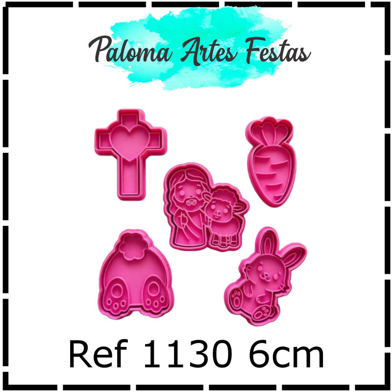 Kit Cortadores e Marcadores de Páscoa 5 Peças Biscoito Coelho Cenoura Cristo Páscoa pasta americana
