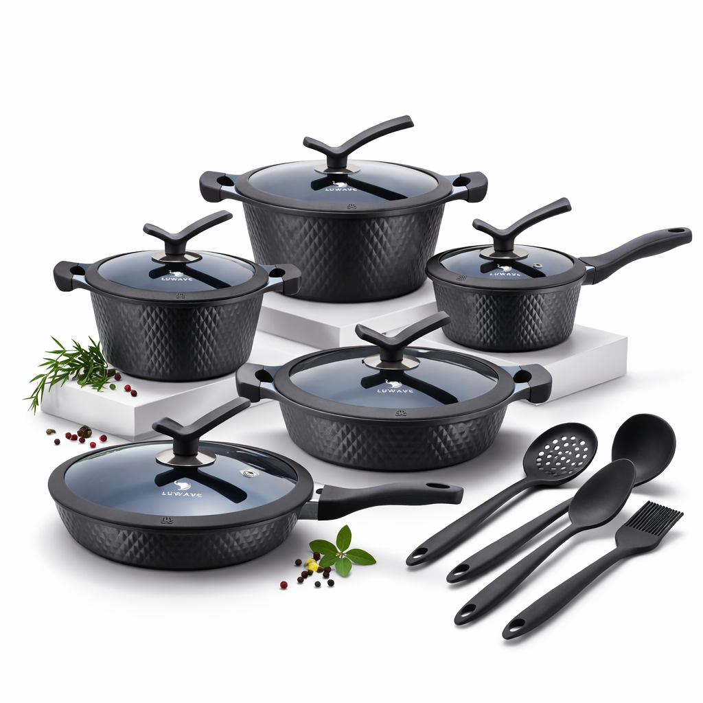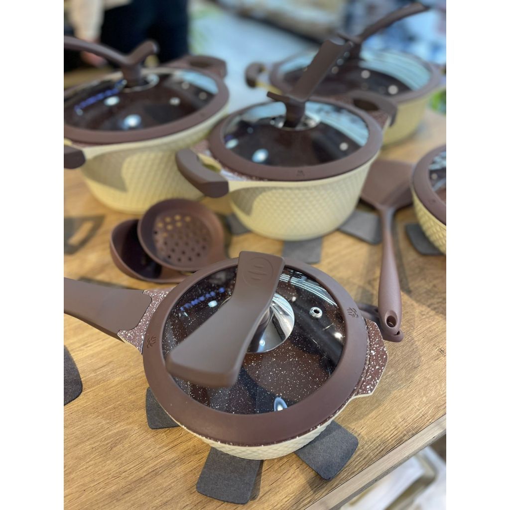 Jogo de Panelas Cerâmica Granito Antiaderente Indução Gás Frigideira Caçarola Soft Touch