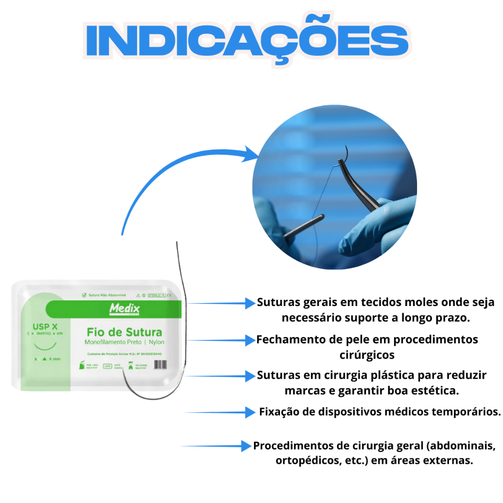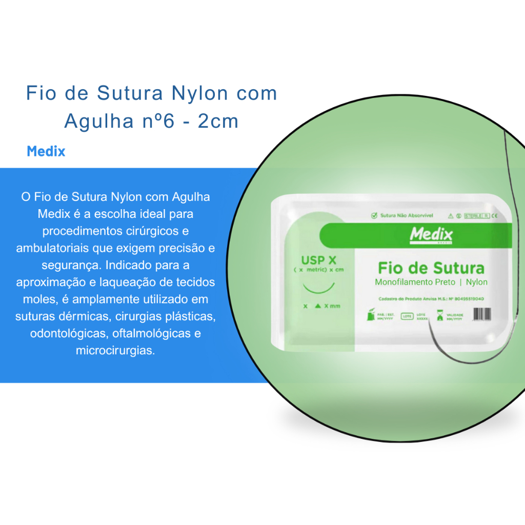 Fio de Sutura Nylon com Agulha nº6 - 2cm Preto 1 Envelope Medix