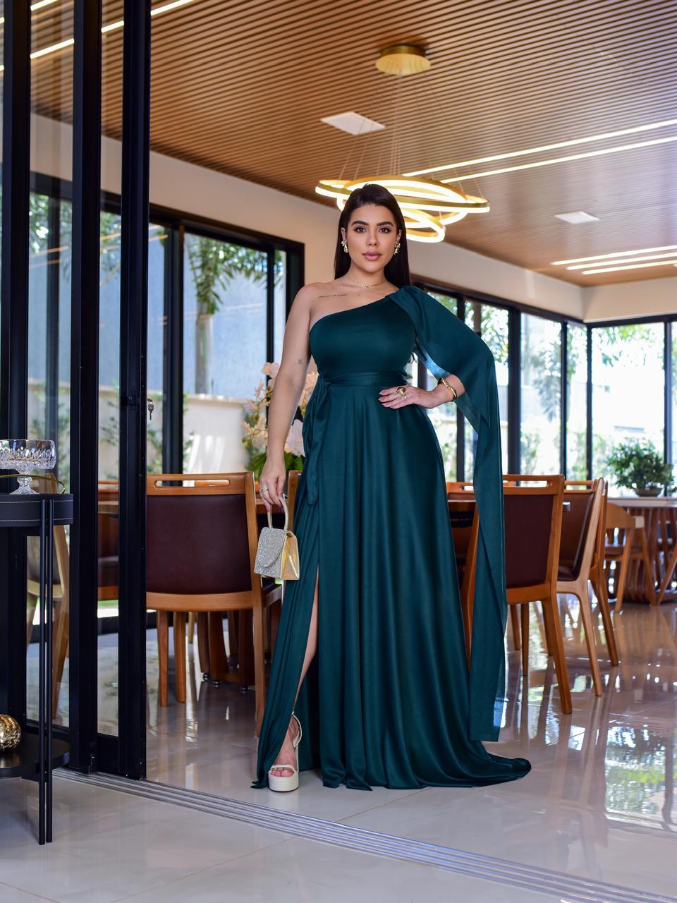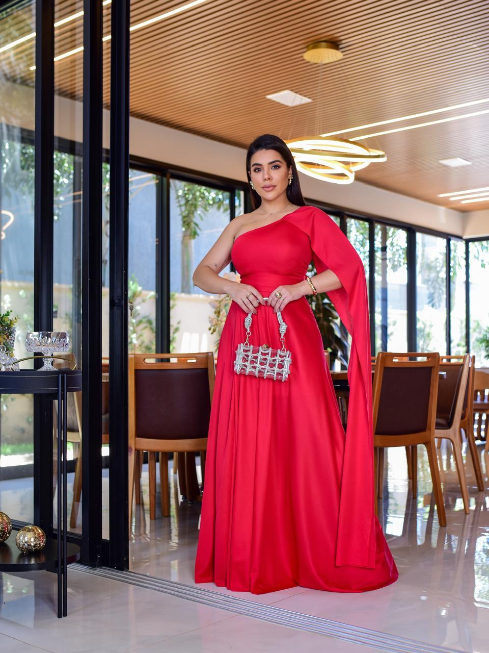Sônia Anair Vestido Feminino Longo de Noiva com Capa Festa Madrinha Casamento