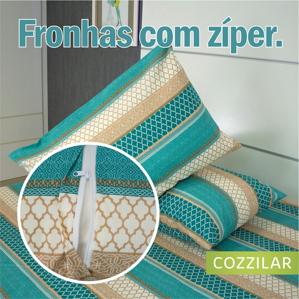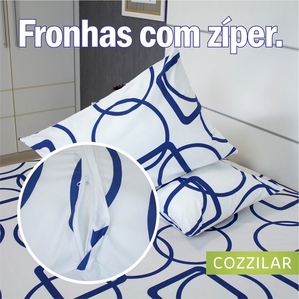 Kit 2 Fronhas 200 Fios Algodão Percal Estampada 70x50cm Zíper Escondido Avulsas Toque Macio Cozzilar
