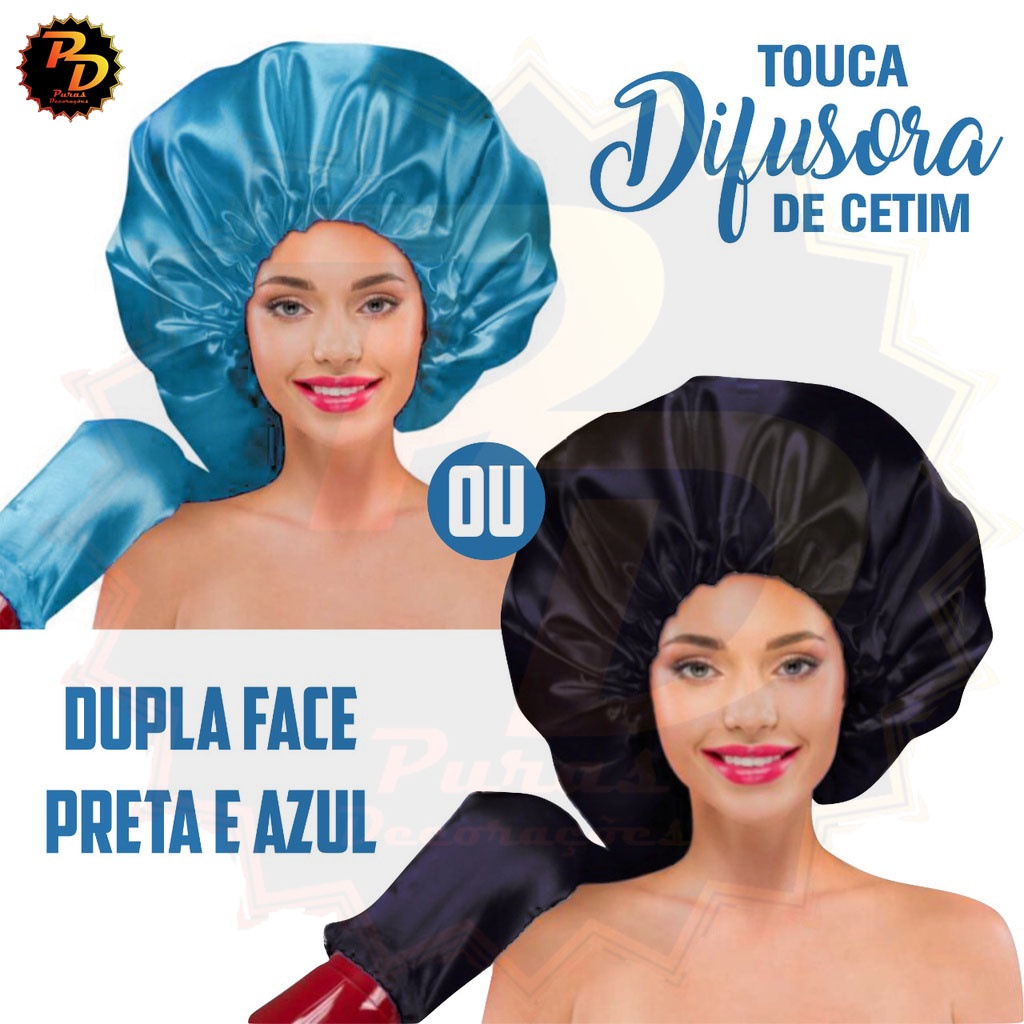 Touca Difusora Cetim Brilhante Mulher Modelo Ajustável Cabelo Secador Presente