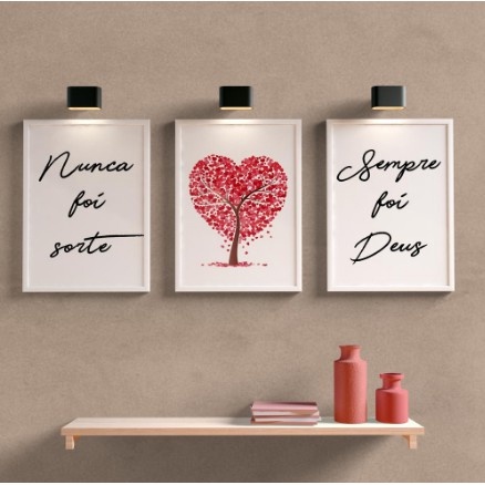 Kit Quadros Decorativos Mosaico 3 Peças Trio Frase Nunca Foi Sorte Sempre Foi Deus Religioso Salmo Árvore da Vida
