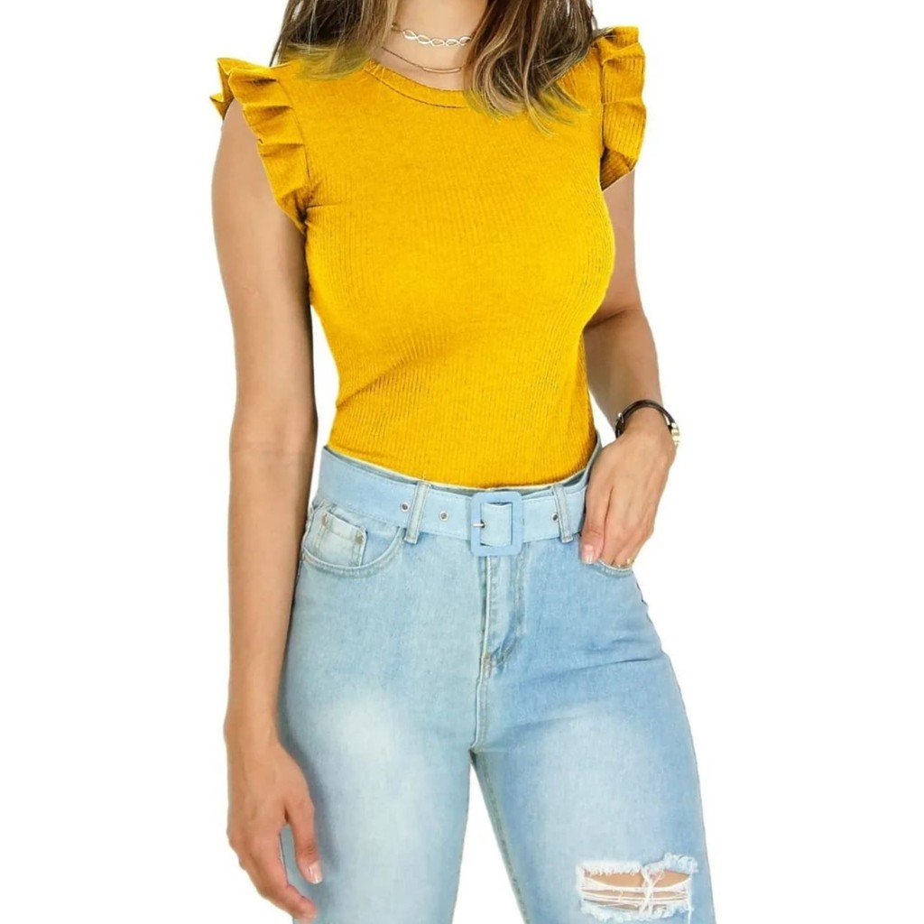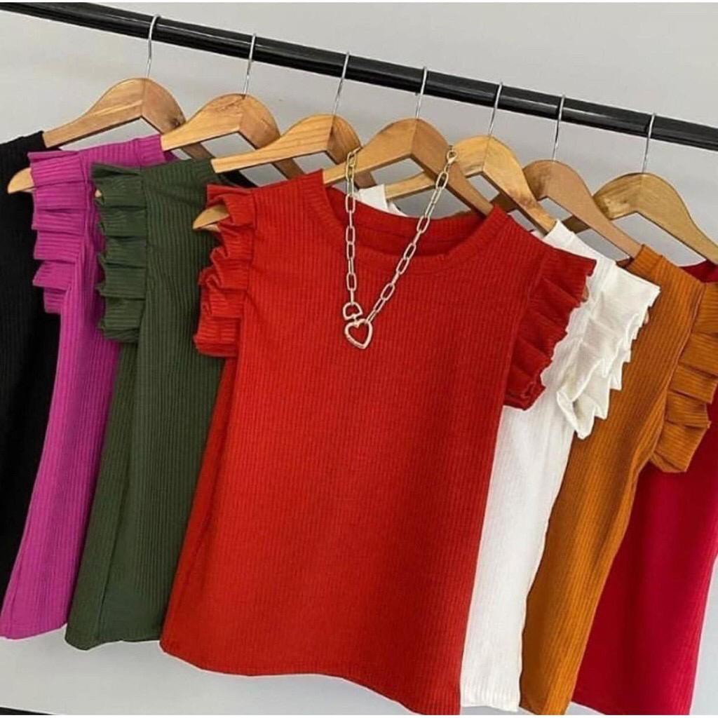 Blusa canelada com babado Blusinha Regata Moda feminina Blogueira (Inovastilo)