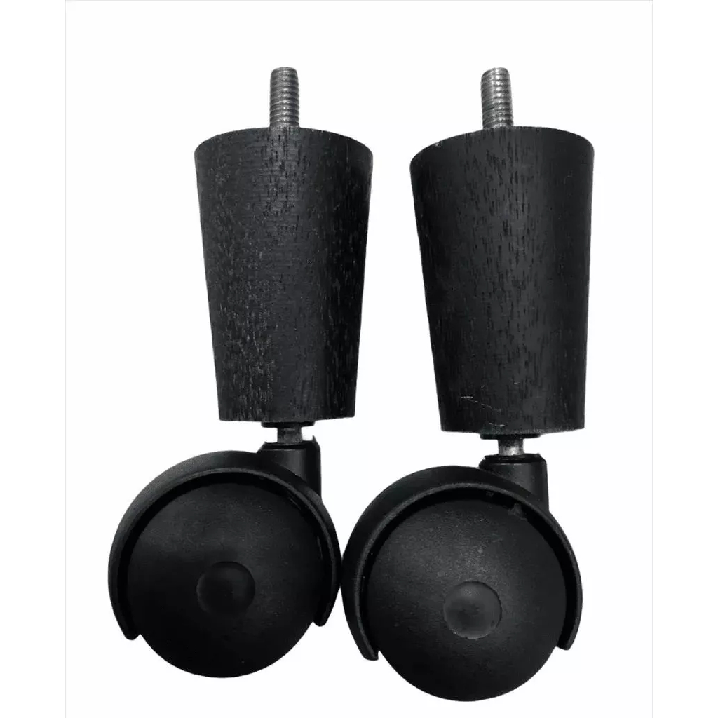 Pés de cama box ou box baú com rodinha 4 und preto de 12 cm