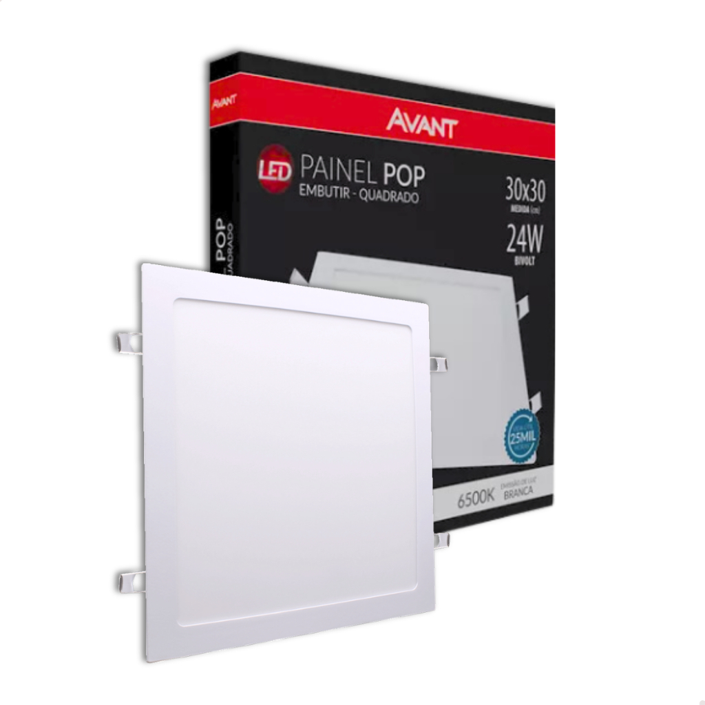 Painel Plafon 29x29 24w Embutir Luminária Led Branco Frio 6500K Neutro 4000K Quente 3000K Avant