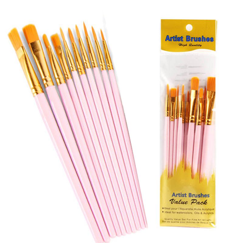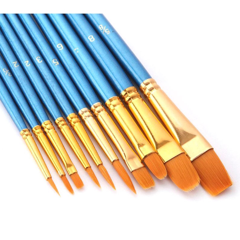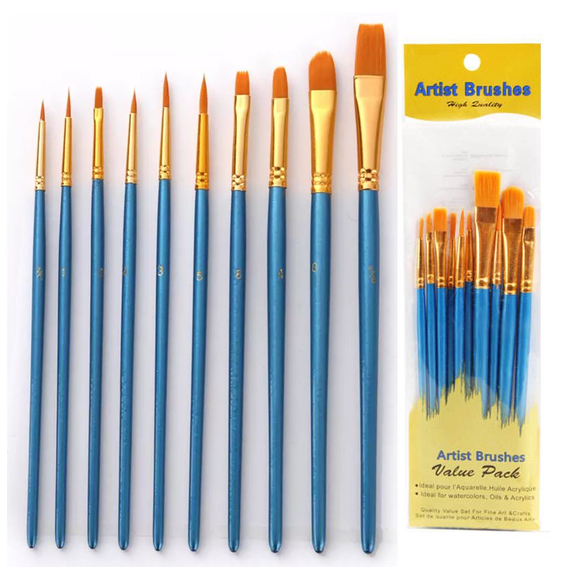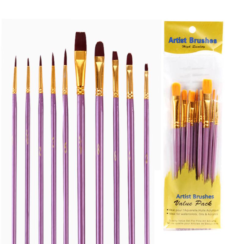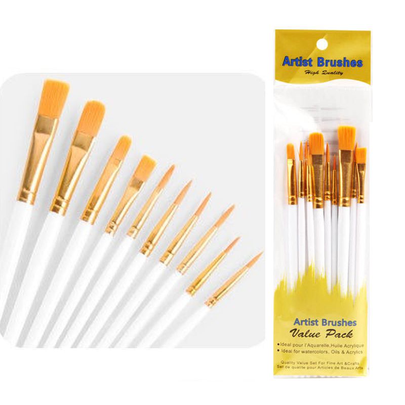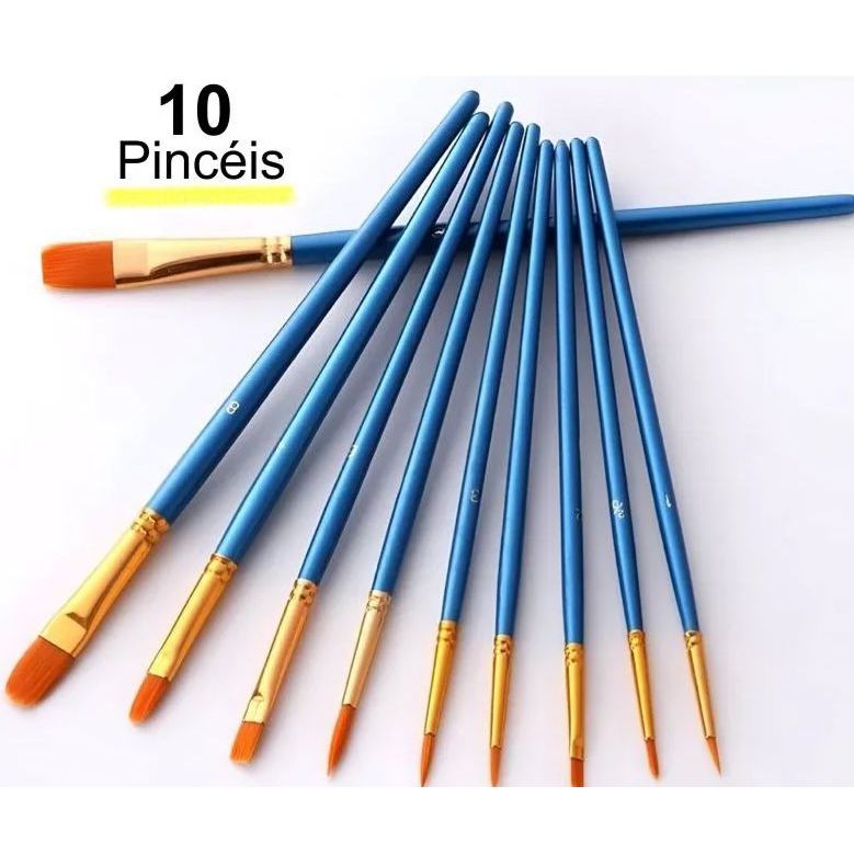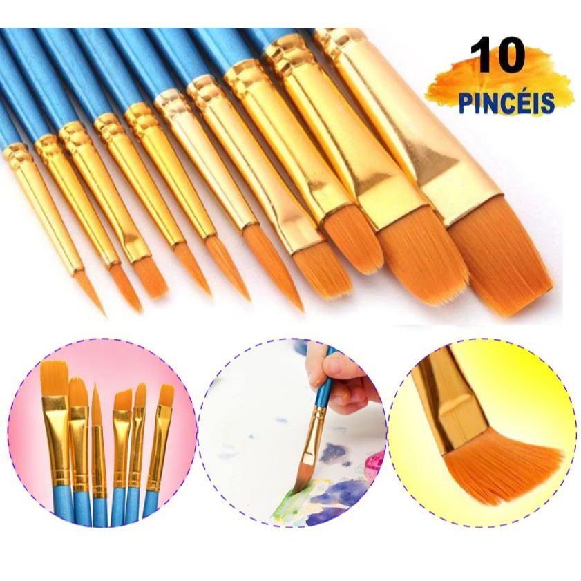 Kit Pincel Artístico Para Pintura em Tinta Aquarela Acrílico Óleo Pva uso em Papel Tecido Telas com 10 Pincéis