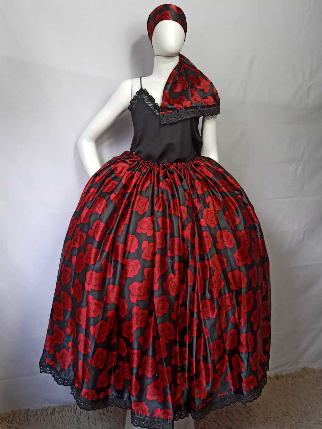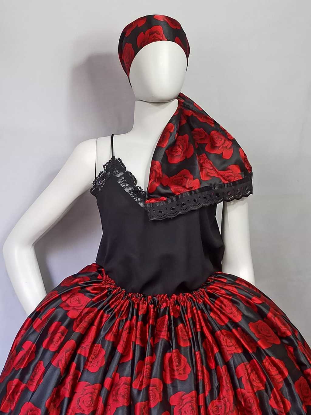 Conjunto Saia pomba gira rosas pequenas