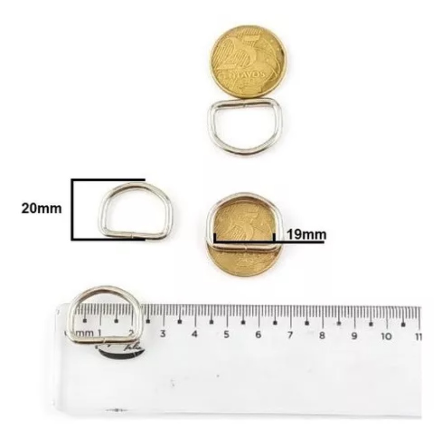 Kit 30 e 50 Fivela Argola Meia Lua de metal dourada para bolsas chaveiros