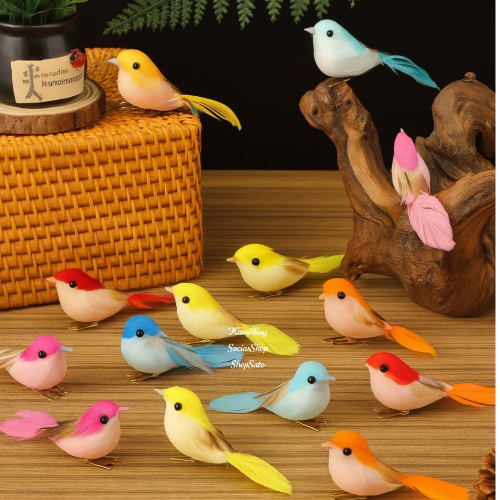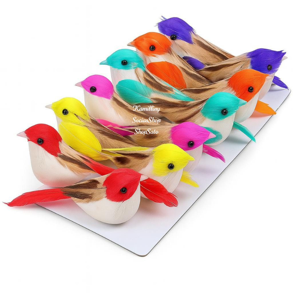 Kit 04 Passarinhos Artificiais Coloridos Sortidos Decoração Festa 10,5 Cm Enfeite Decorativo ENFEITE