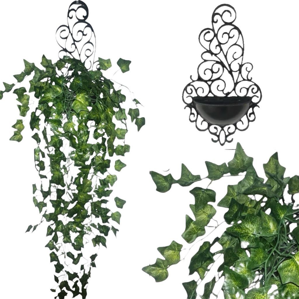 1 Arranjo completo de Cordão De Flores Artificiais Verdes Pendentes No Vaso Arandela Preto De Parede