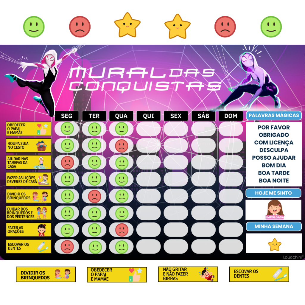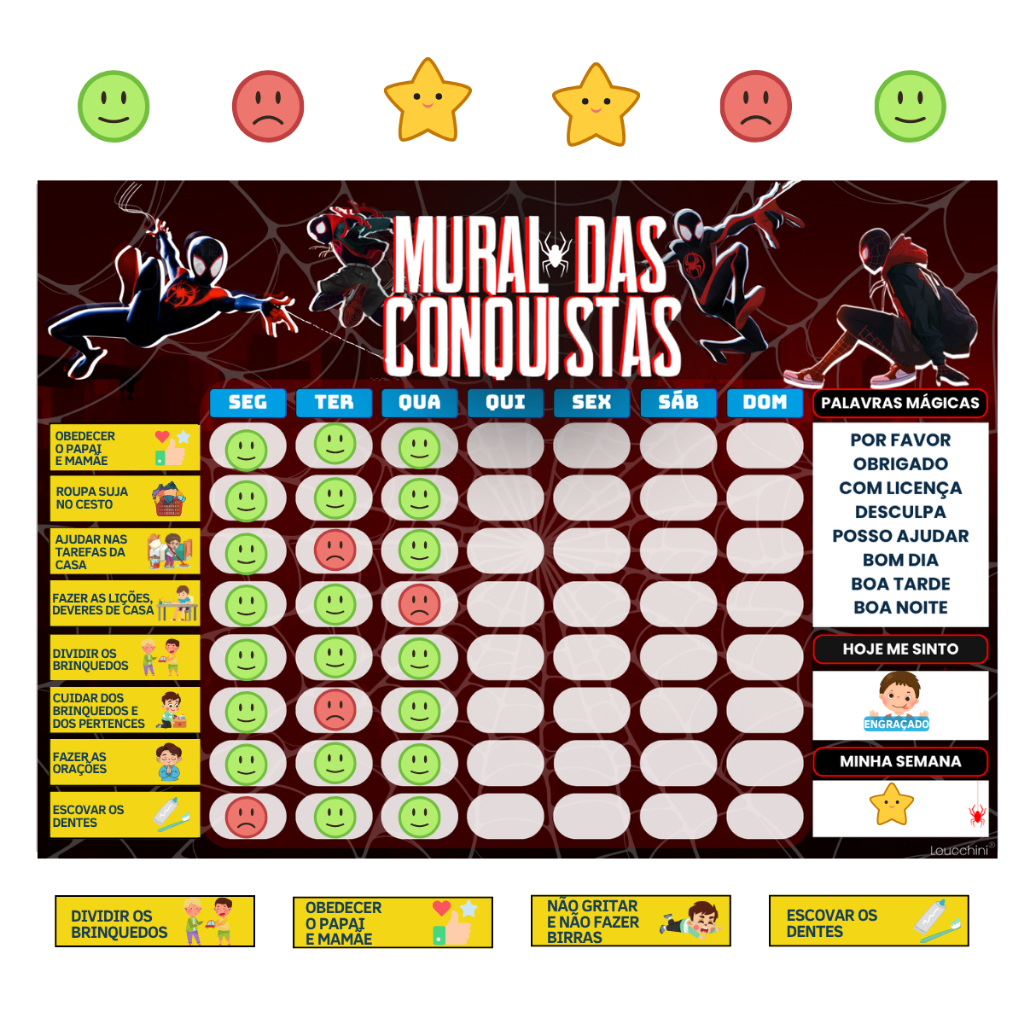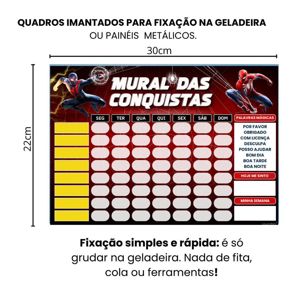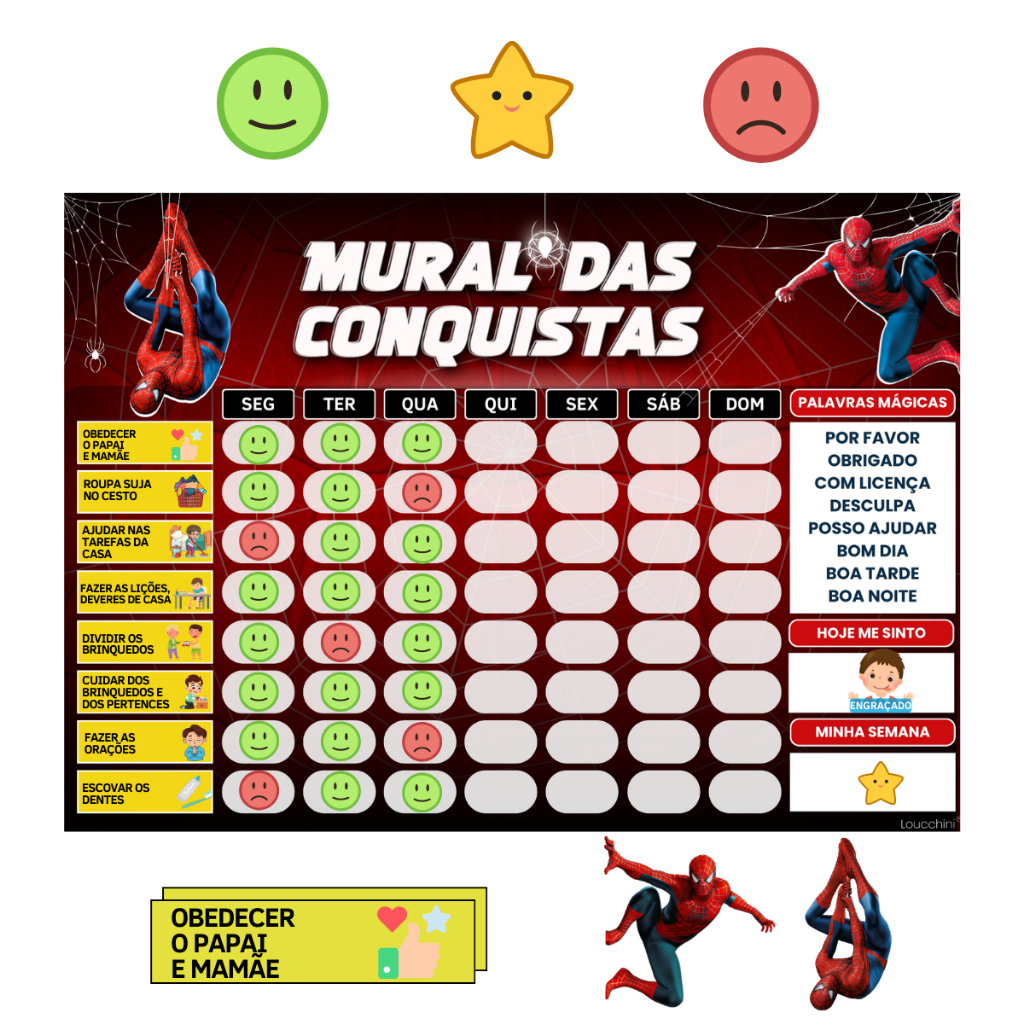 Mural de Incentivo e Rotina Diária para Crianças Infantil – "Spider-Man" (22x30cm)