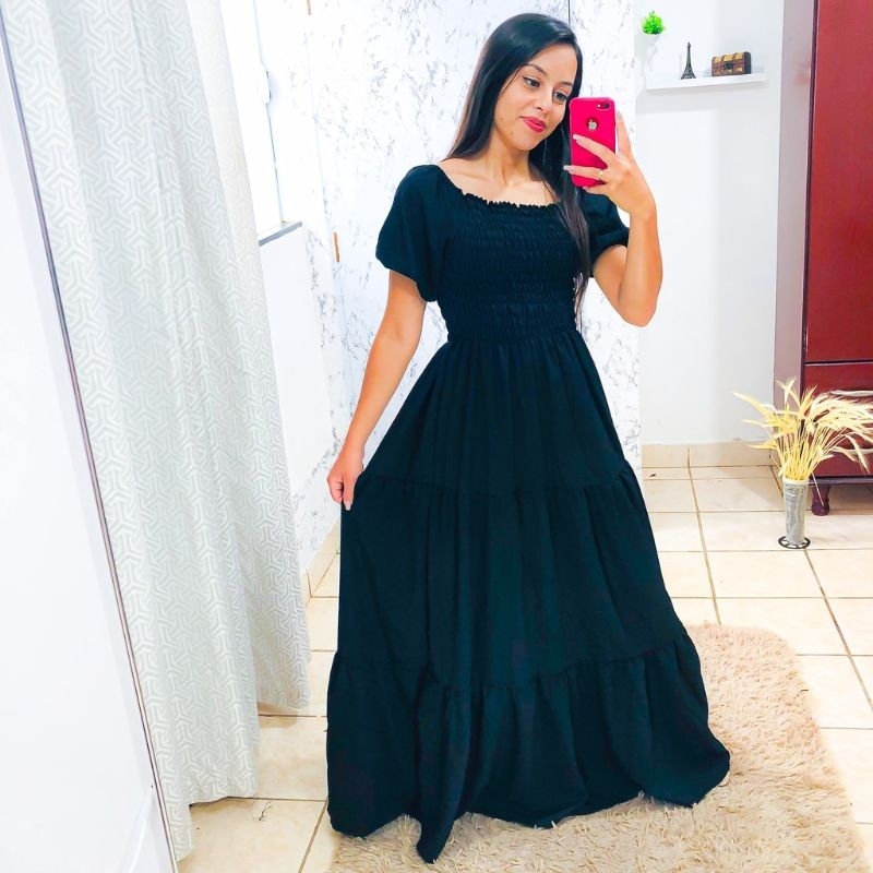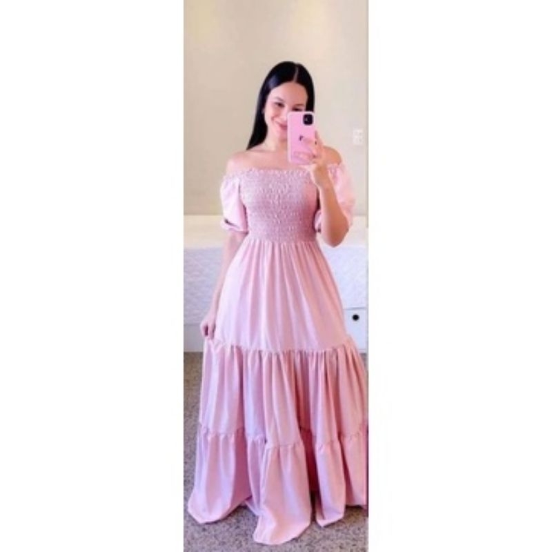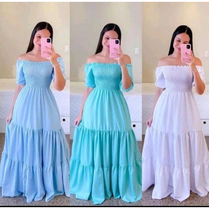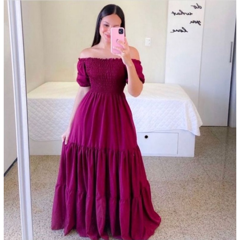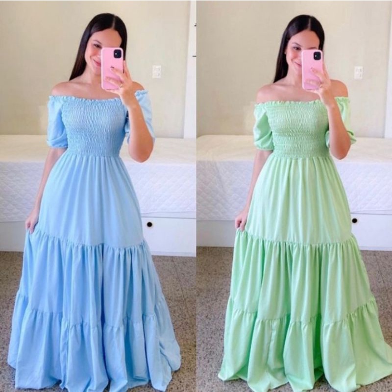 Vestido Femenino Longo Lastex Moda Evangélica Vestido Princesa Blogueira