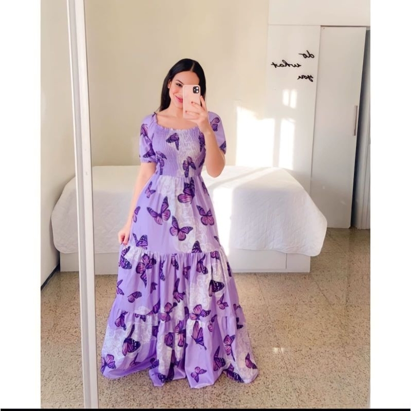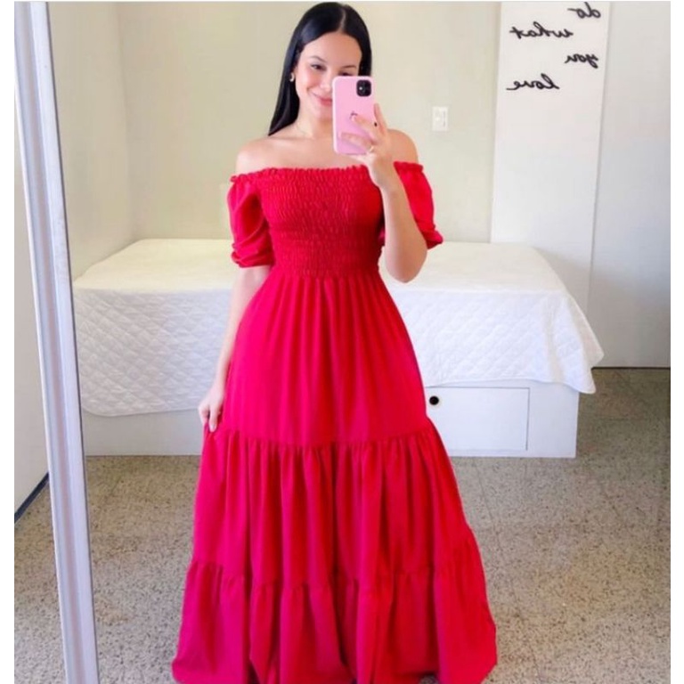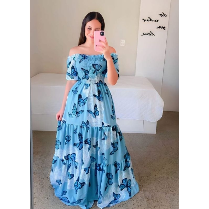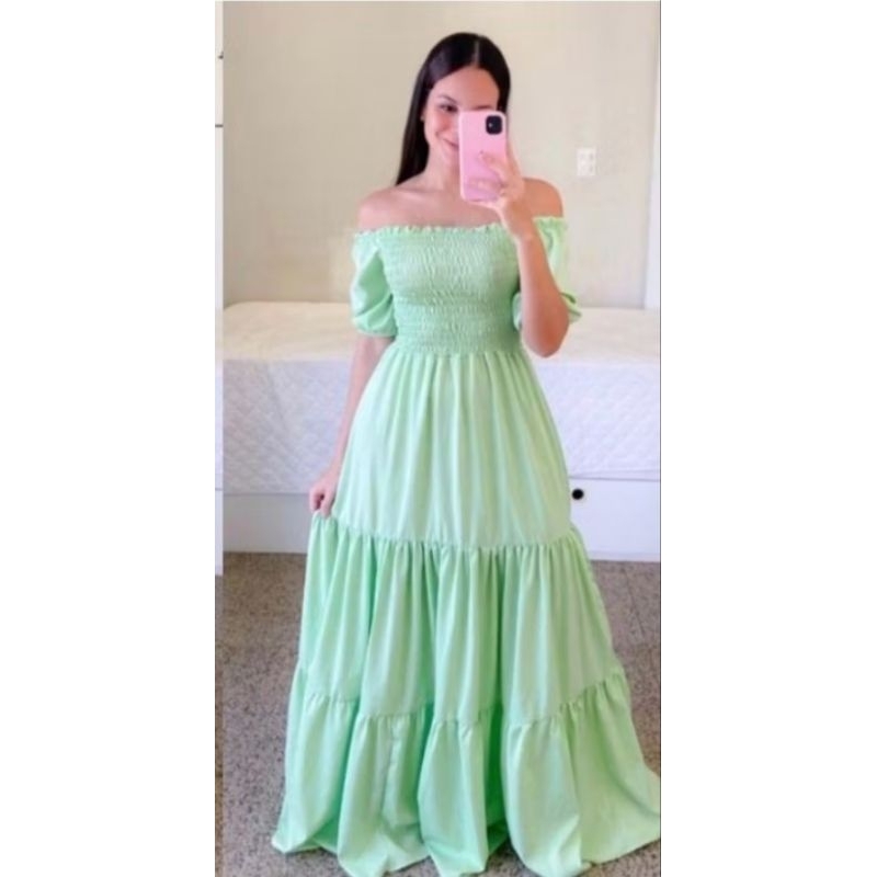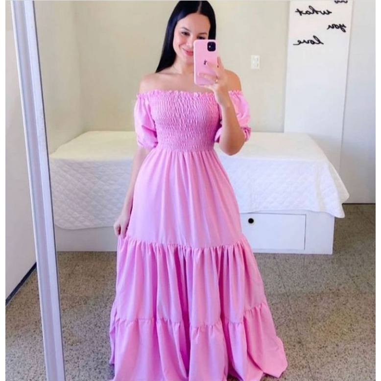 Vestido Femenino Longo Lastex Moda Evangélica Vestido Princesa Blogueira