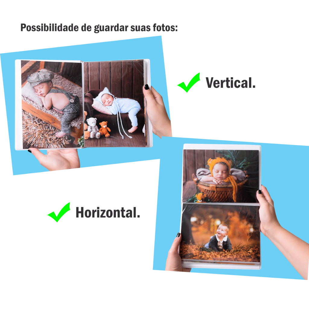 Álbum fotográfico para 100 fotos 15x21 URSINHO PRÍNCIPE Bebê Azul Urso Rei Newborn