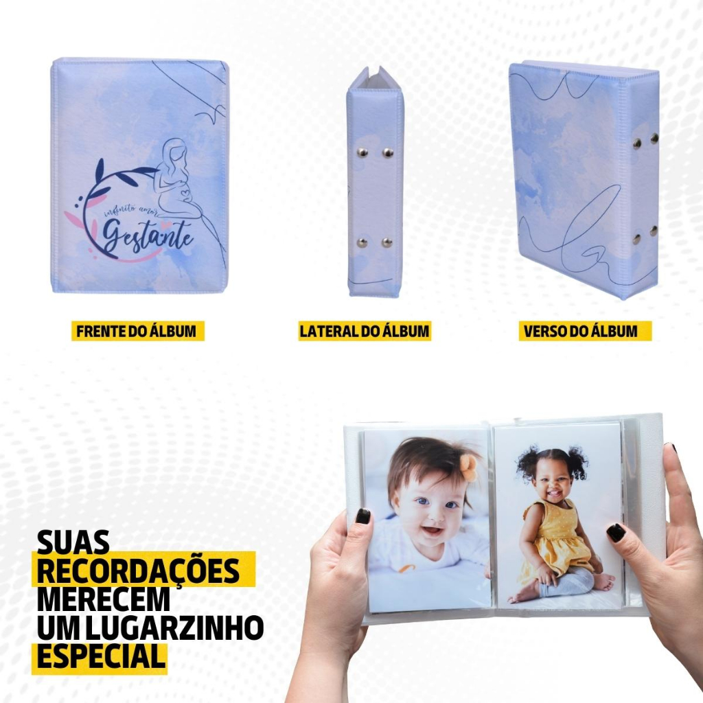 Álbum Fotográfico 100 Fotos 10x15 GESTANTE AZUL Bebê Grávida Gestação