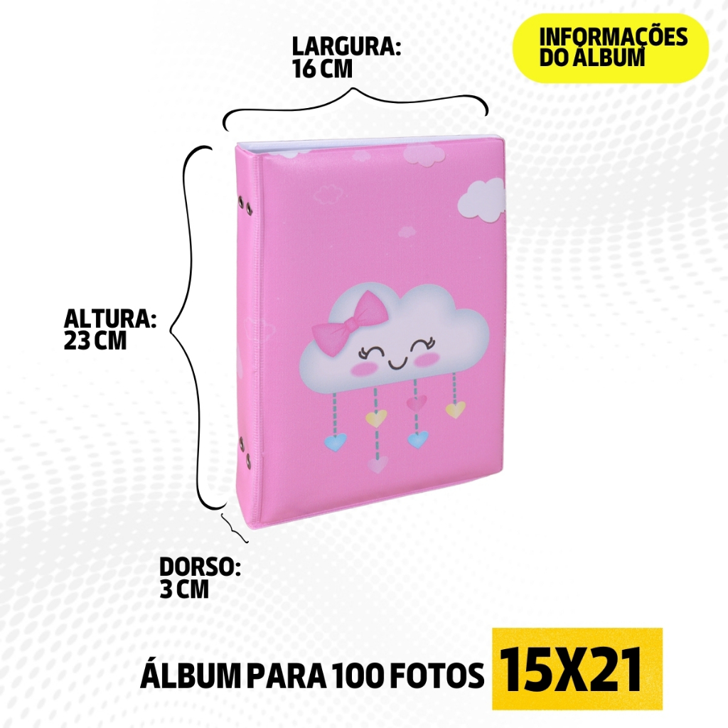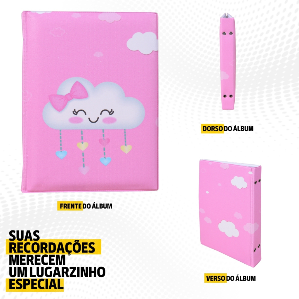 Álbum Fotográfico 15x21 para 100 Fotos CHUVA DE AMOR ROSA Bebê Infantil Nuvem Bençãos