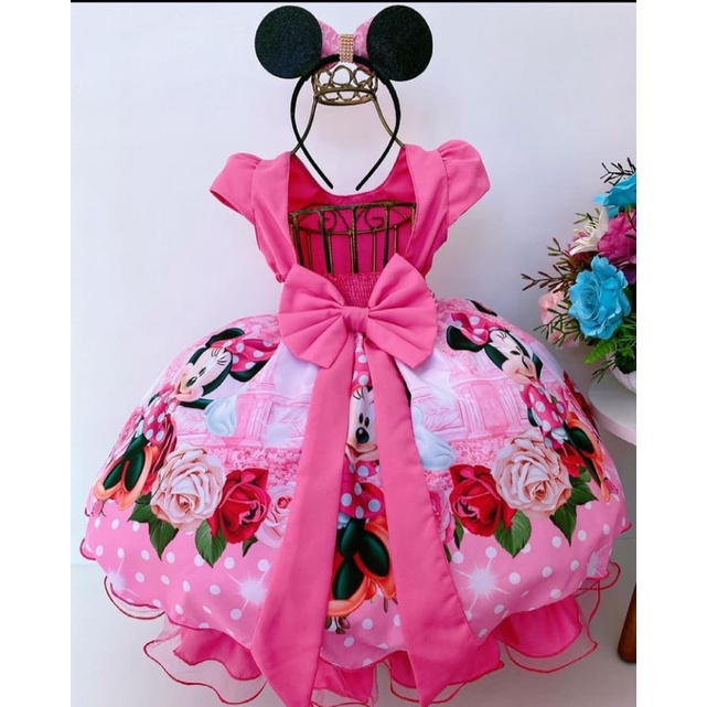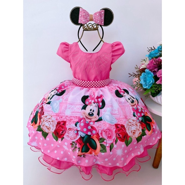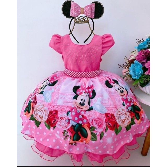 Vestido Infantil Minnie Vermelho E Rosa Vestido Temático Infantil