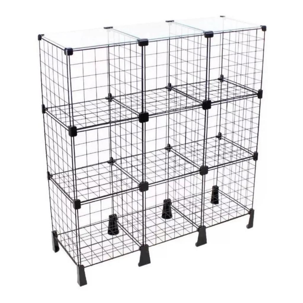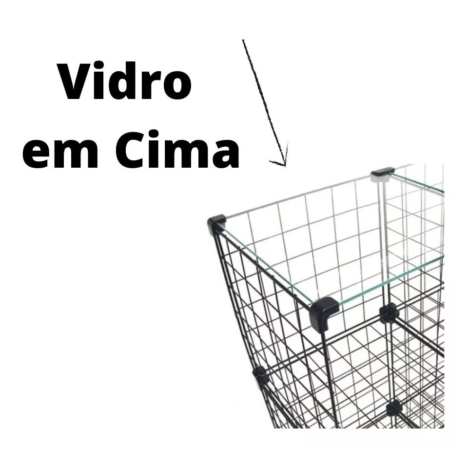 Balcão Estante Expositor Aramada 9 Nichos 30x30 C/ Vidro Em Cima