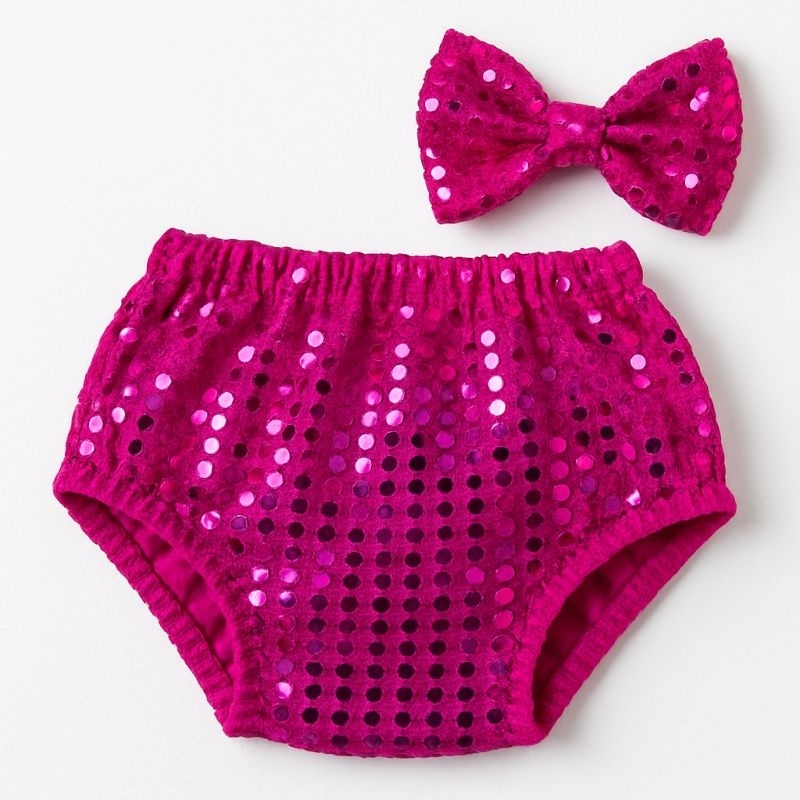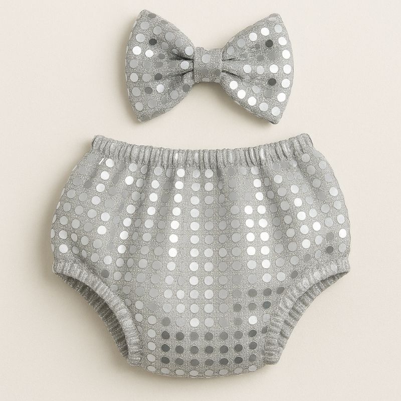 ikit kTapa Fralda de Paetê com Laço | reveillon Carnaval | Prata e Dourado | Fantasia Bebê | Kit Brilhante