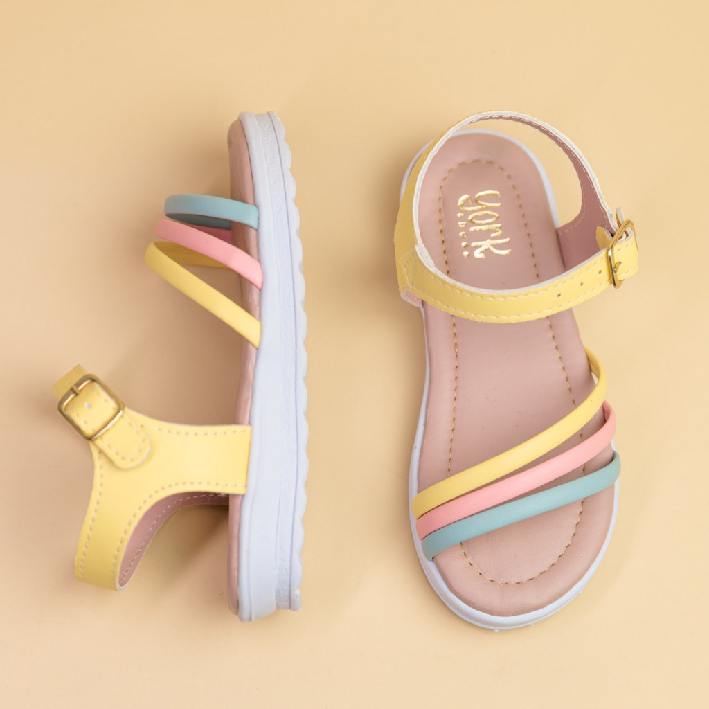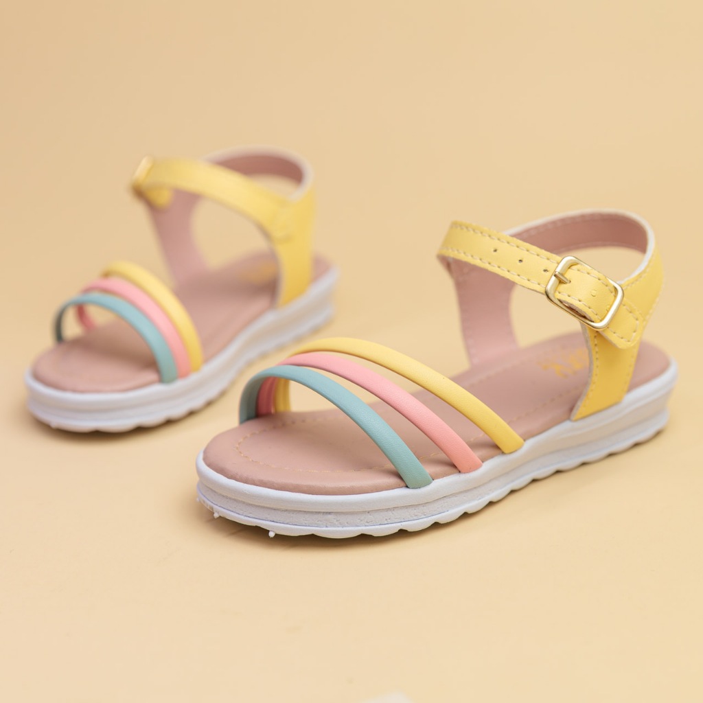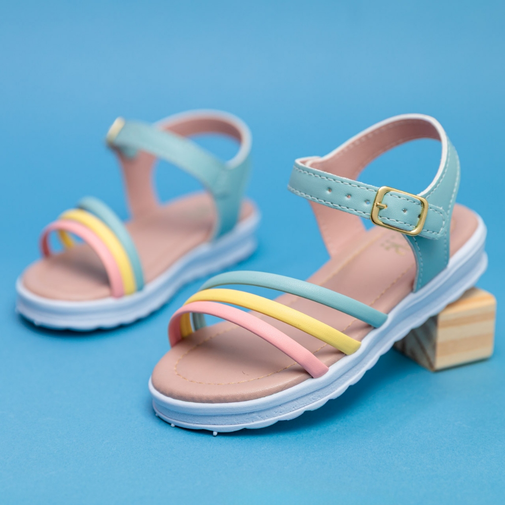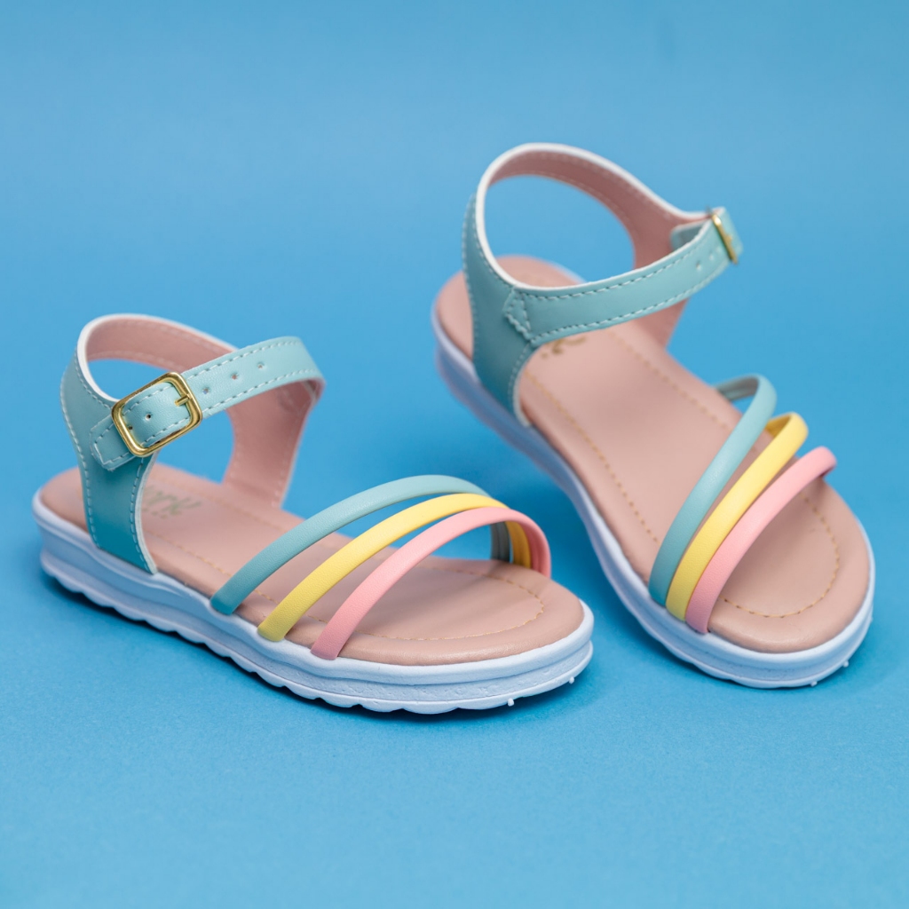 Sandália Infantil Menina Rasteira com Tiras Coloridas Fivela Ajustável Dia das Crianças 20 ao 36