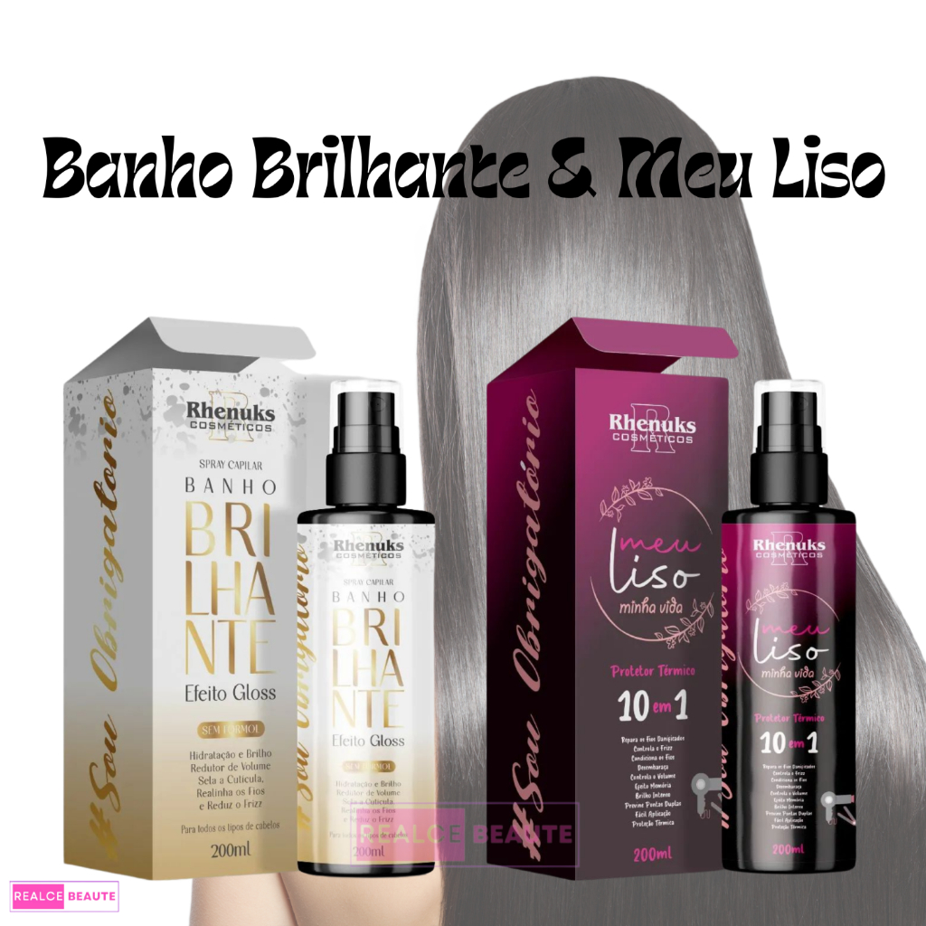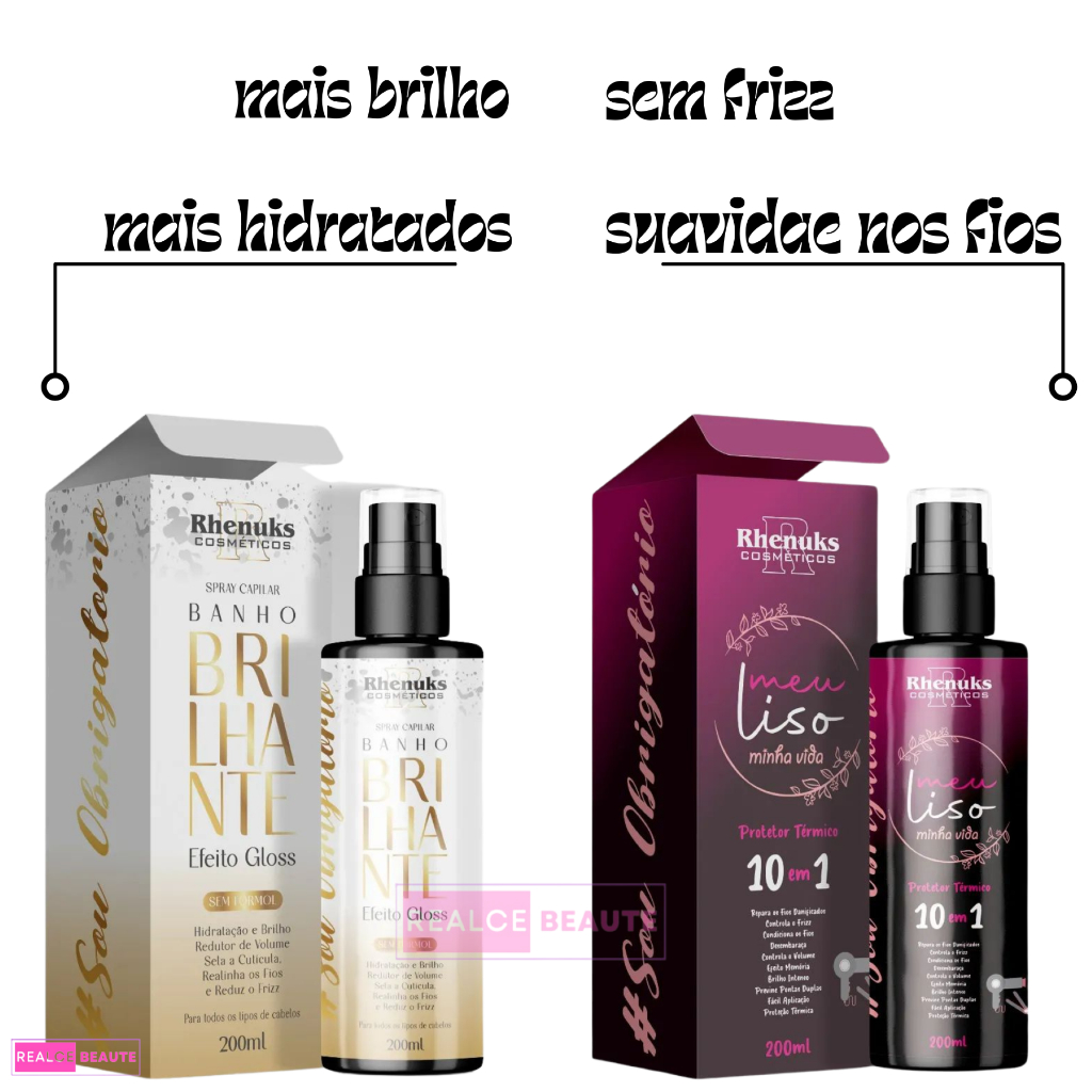 Kit Spray Capilar Meu liso + Spray Capilar efeito GLOSS MULTIFUNCIONAL BANHO BRILHANTE 200ml cada