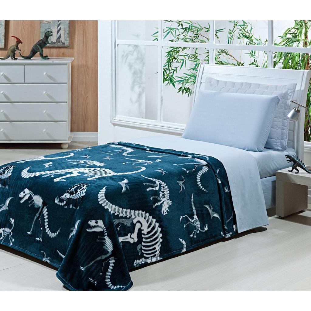 Manta Cobertor Dinossauro Solteiro Infantil Extra Macia Antialérgica- Bege
