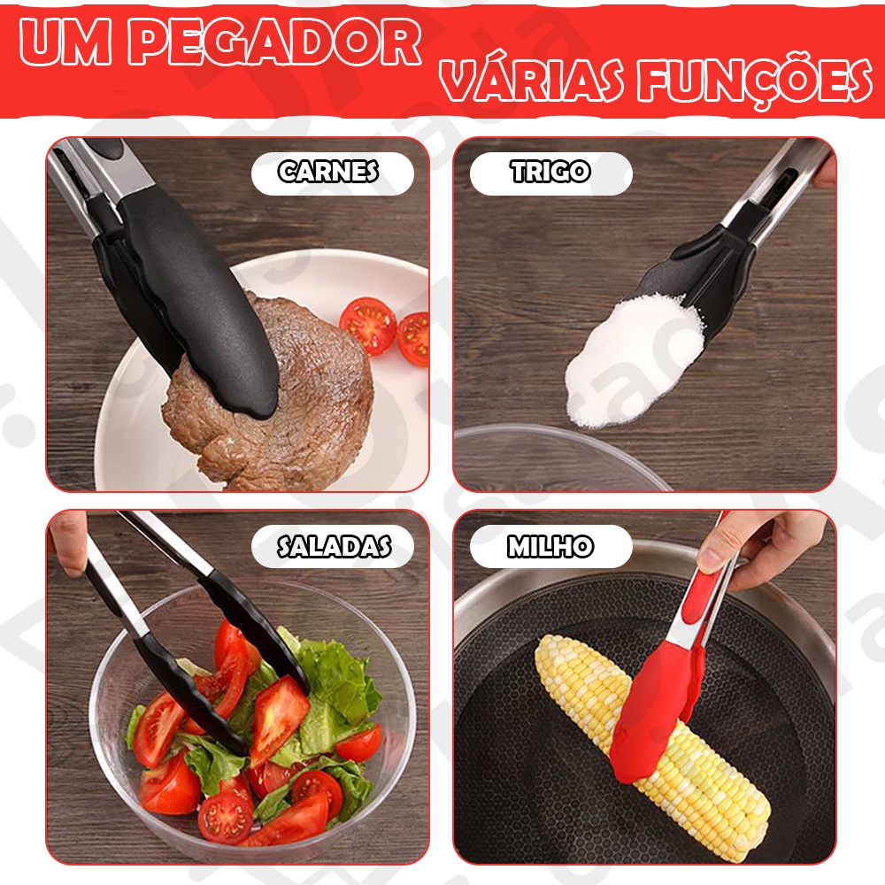 Pegador Em Silicone e Inox para Cozinha - Saladas, Carnes e Alimentos - Grande