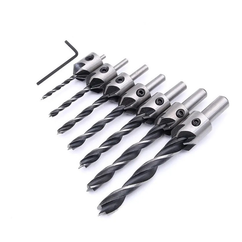 Jogo Kit Broca Escariadora 8 Peças Madeira Piloto ./-/ ATACADAO*-*