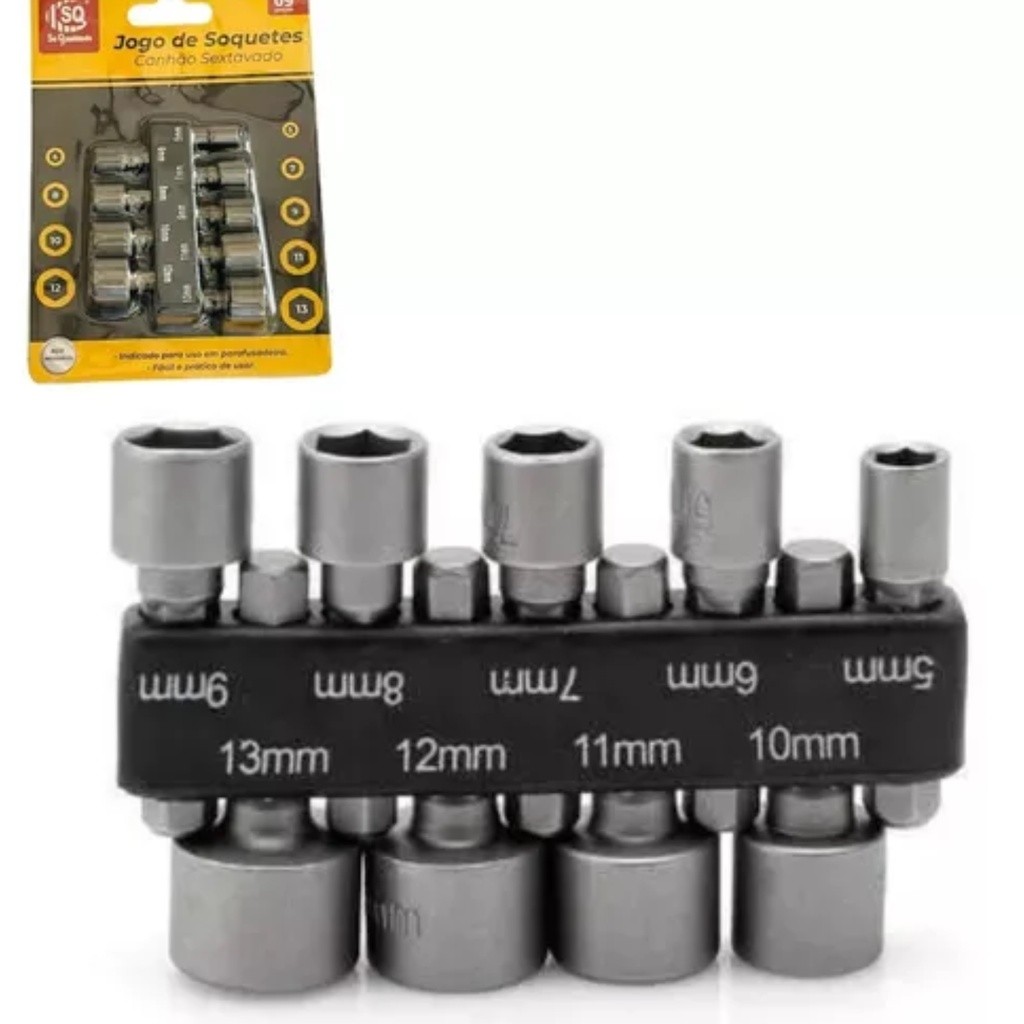 Jogo C/ 9 Soquete Canhao Parafusadeira 5mm A 13mm ATACADAO BAZZAR