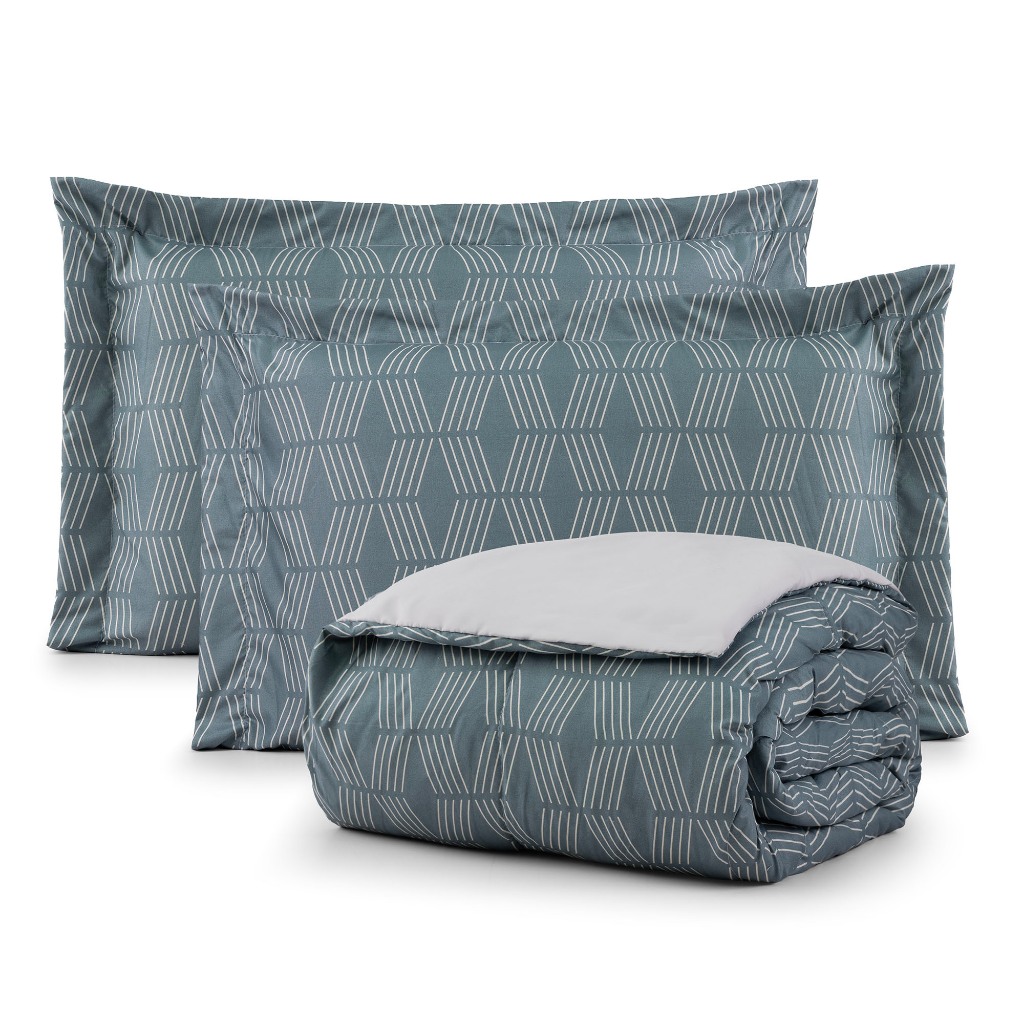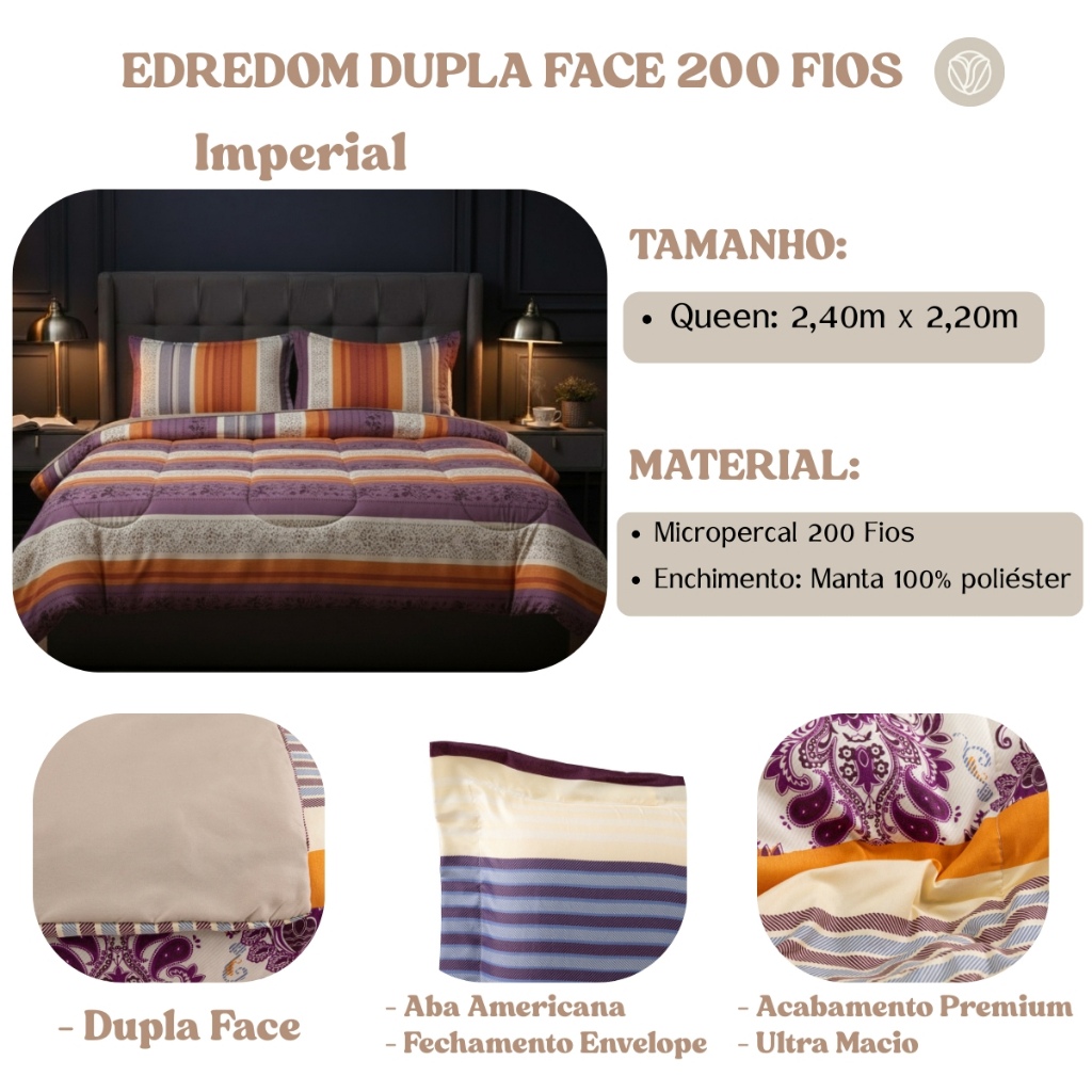 Edredom 200 Fios Antialérgico Queen Dupla Face + 2 Portas Travesseiros Aura
