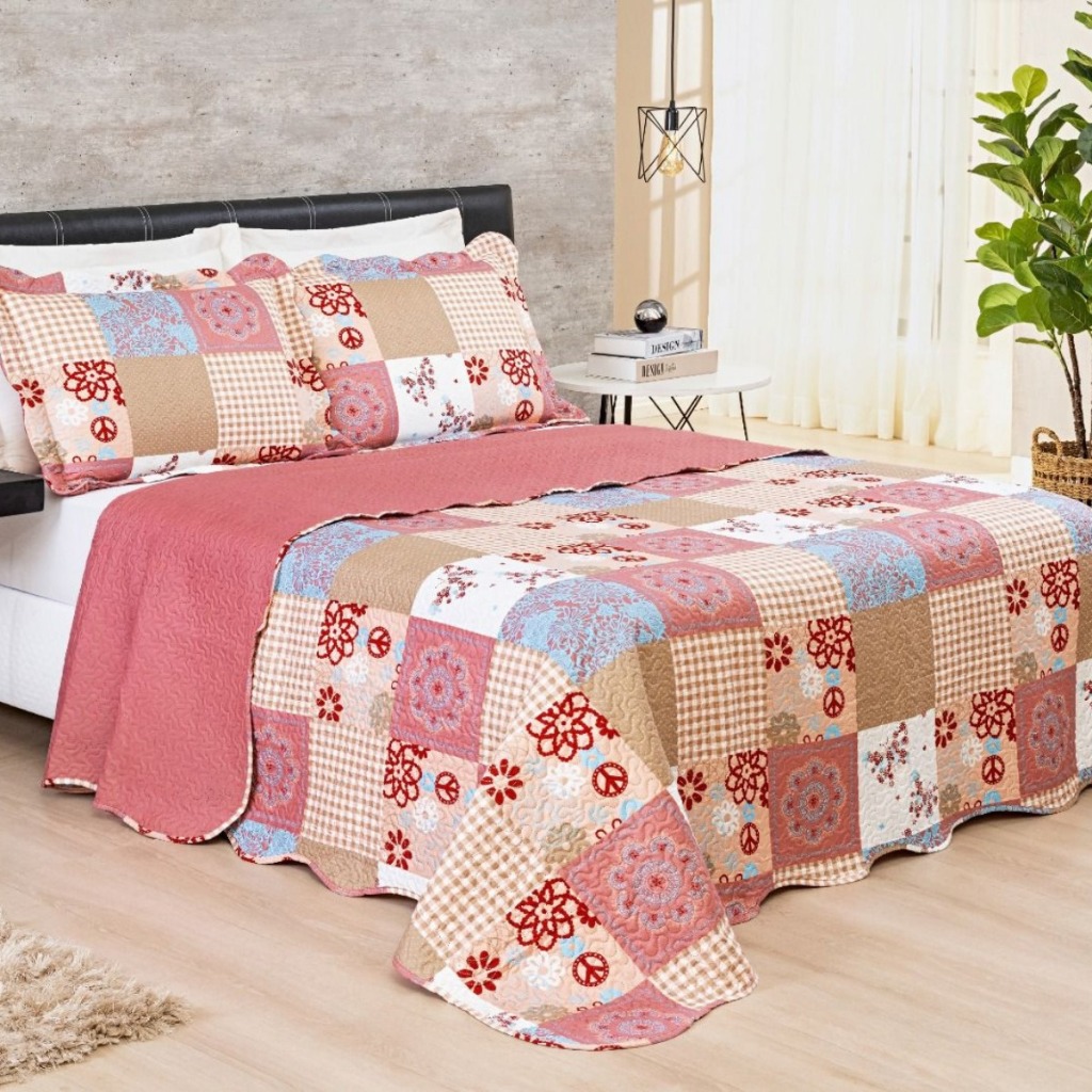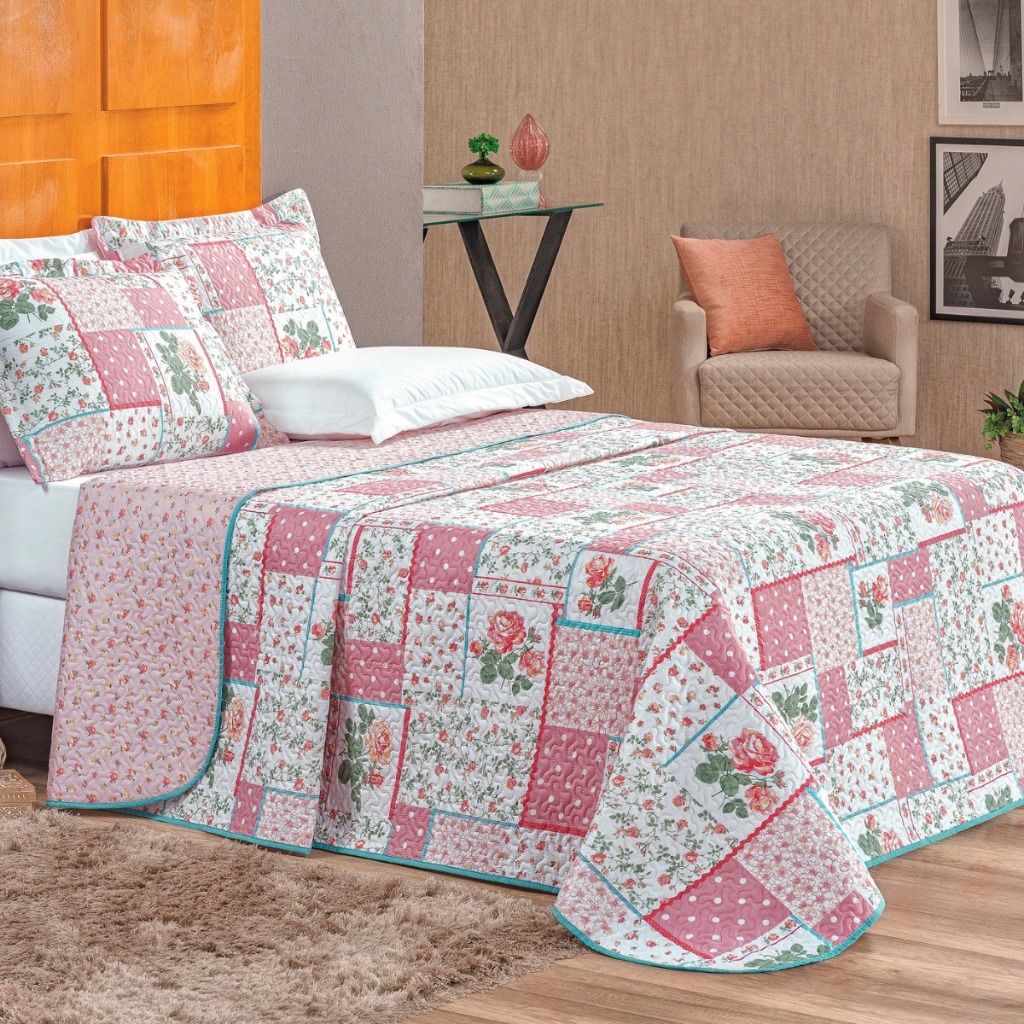Colcha Estampada Dupla Face Bouti Casal Queen King Microfibra - 03 peças
