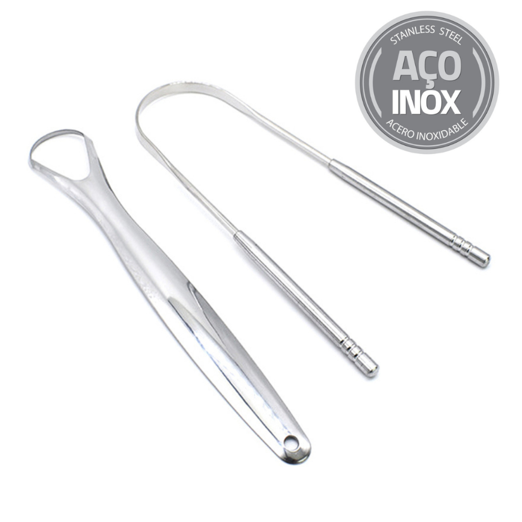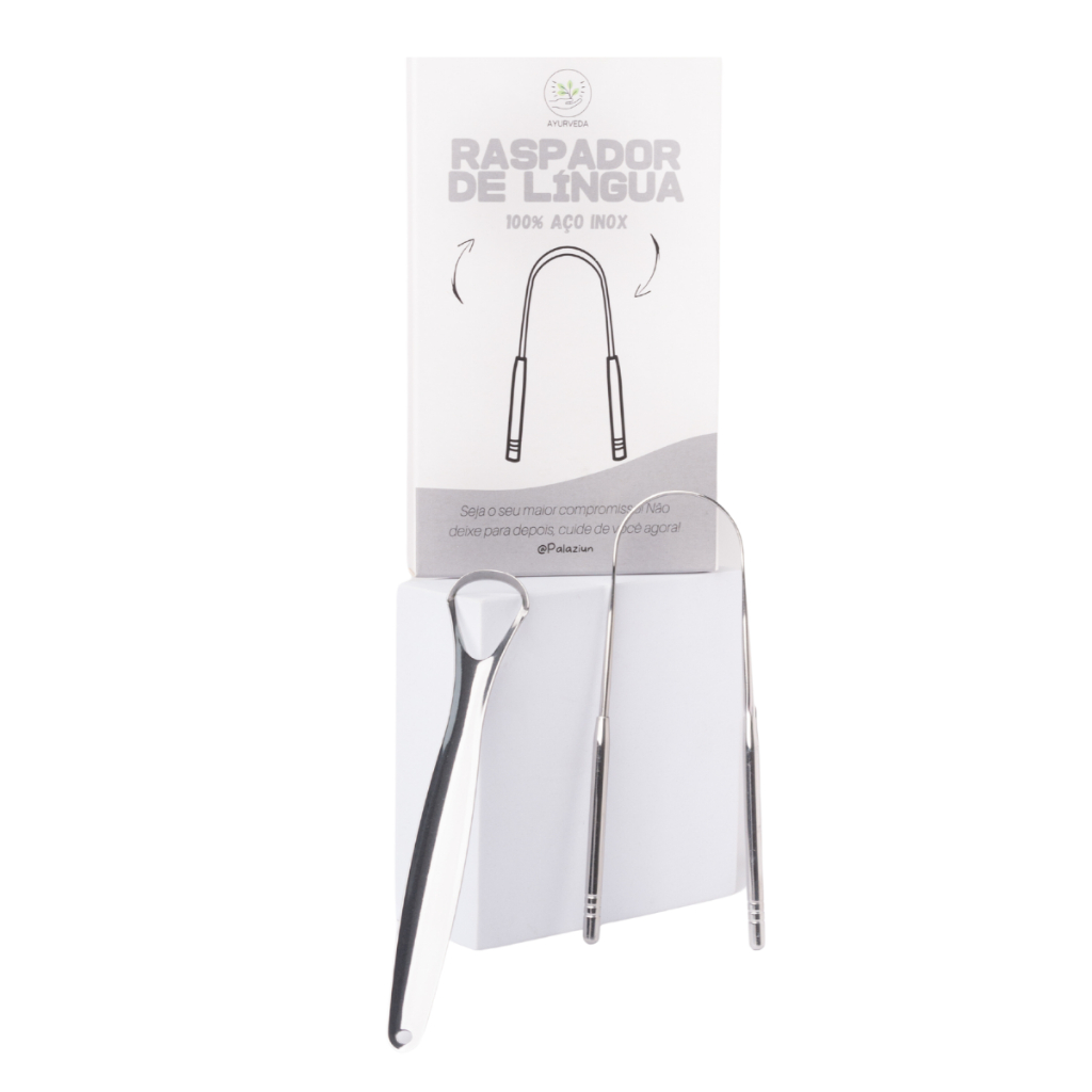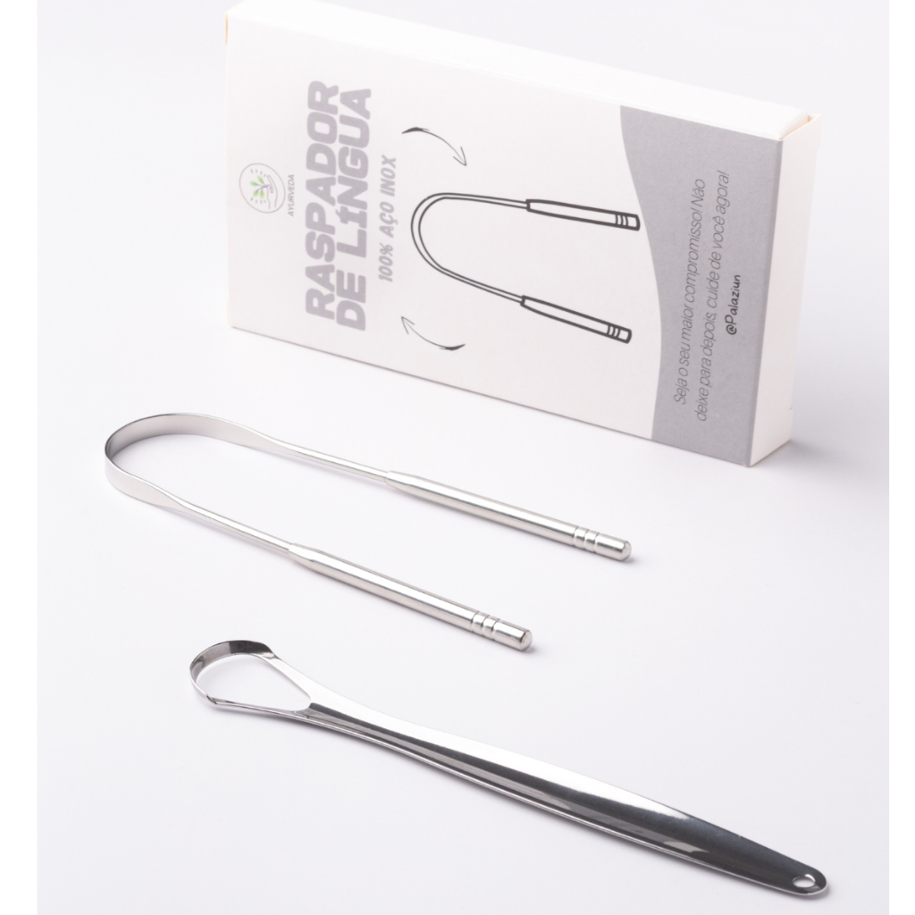 Kit 02 Ferramenta P/ Limpar Língua 100% Aço Inox Raspagem Lingual Ayurveda Palaziun