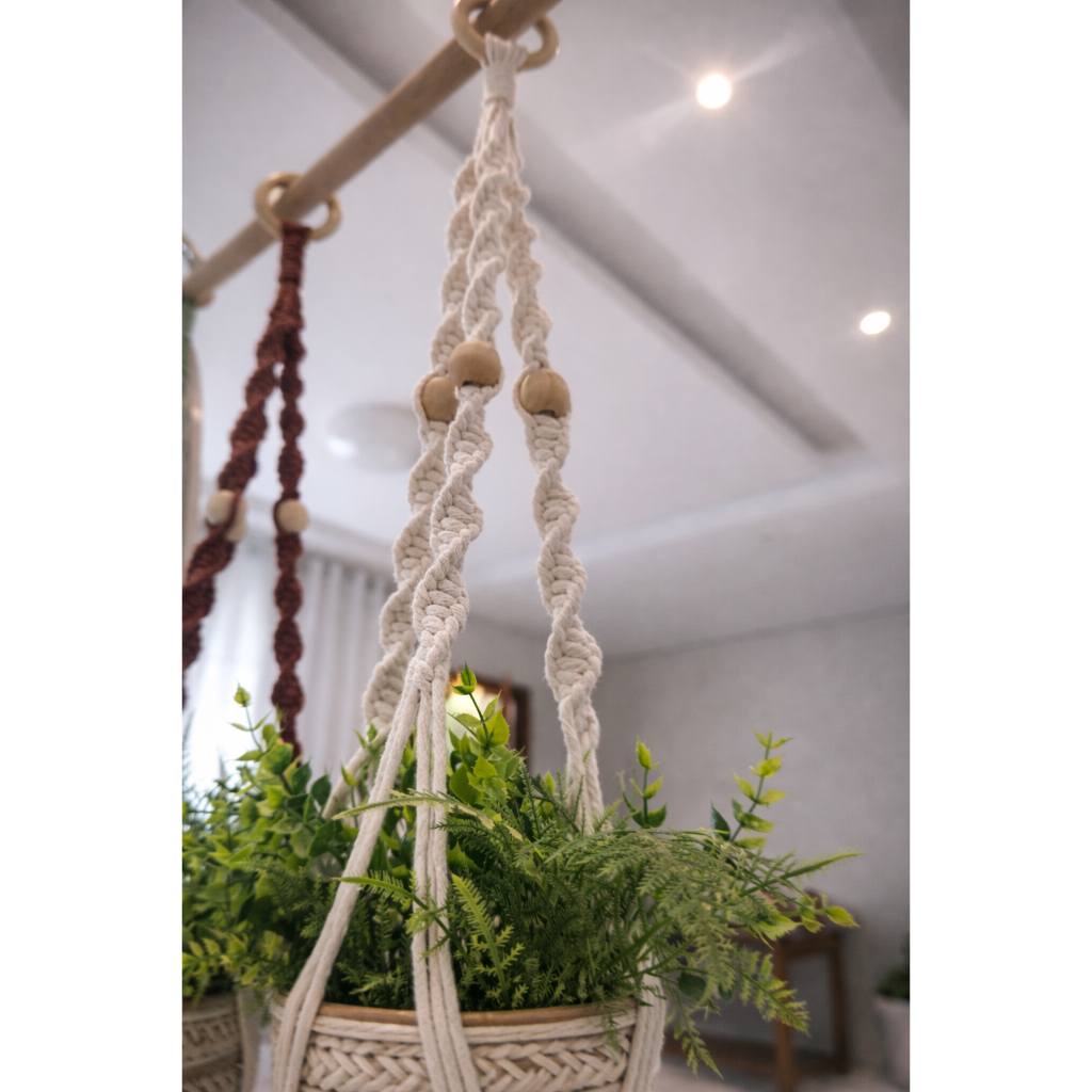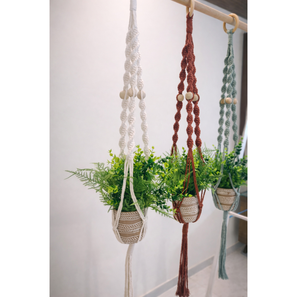 1 ou 2 Peças- Suporte Pendente De Plantas Em Macramê Espiral Com Bolinha de Madeira Plant Hanger 90 cm