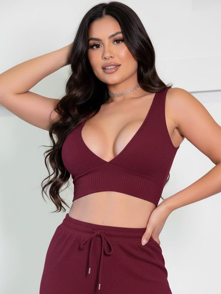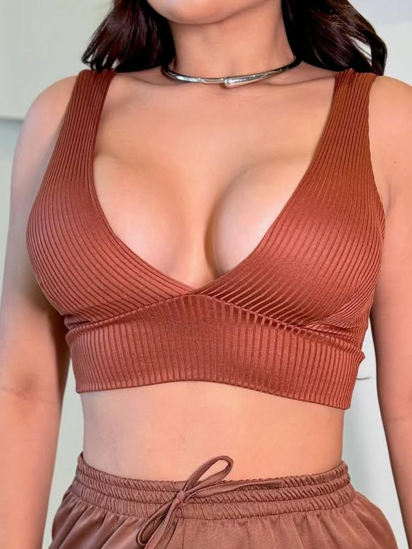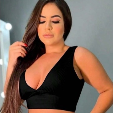 Top Cropped Feminino Canelado Decote V Com Bojo Academia Moda Gringa Fitness Envio Imediato Sensual