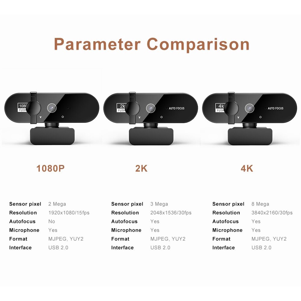 4K Webcam 1080P Mini Câmera 2K Full HD Com Microfone Autofoucus Web Para PC Computador Portátil Online
