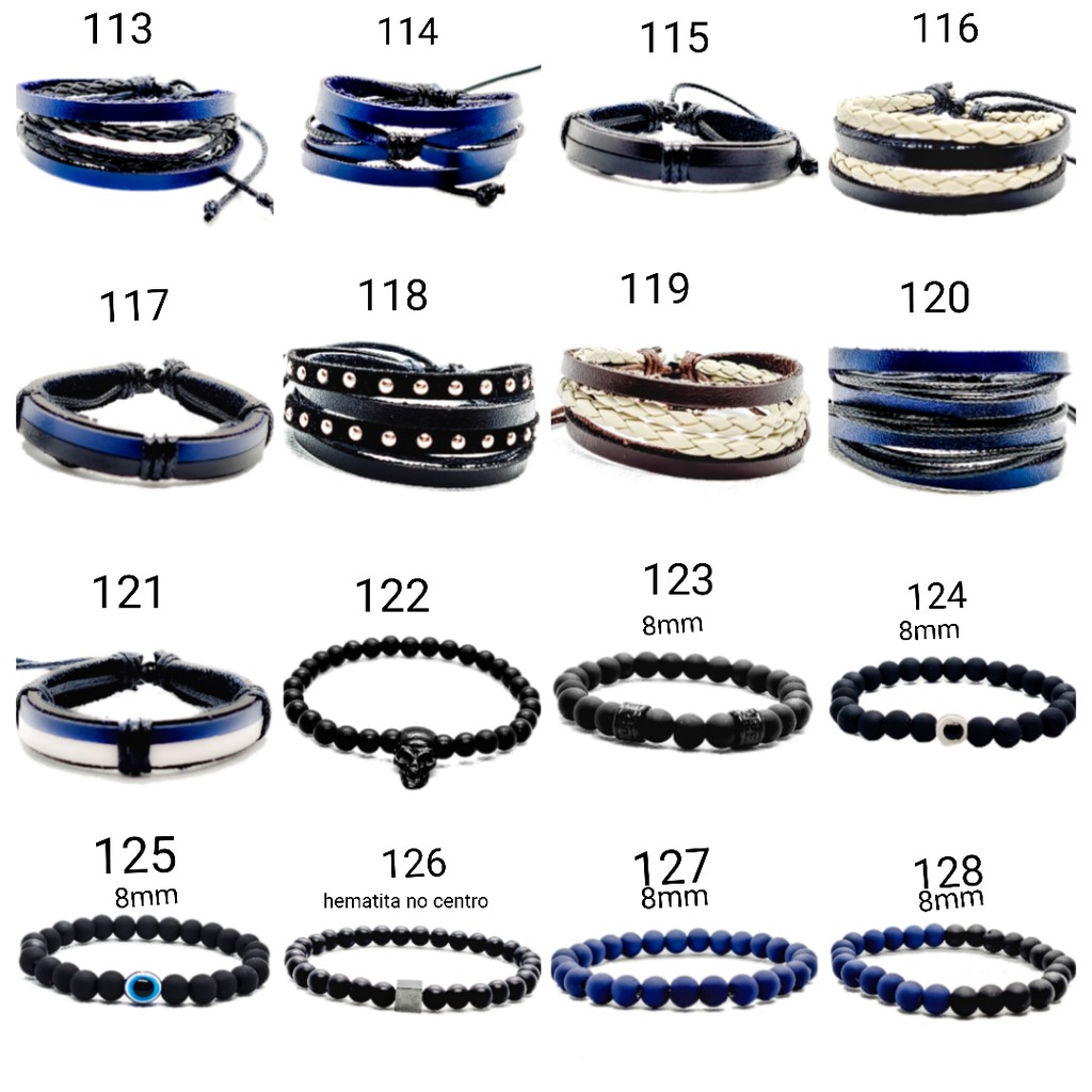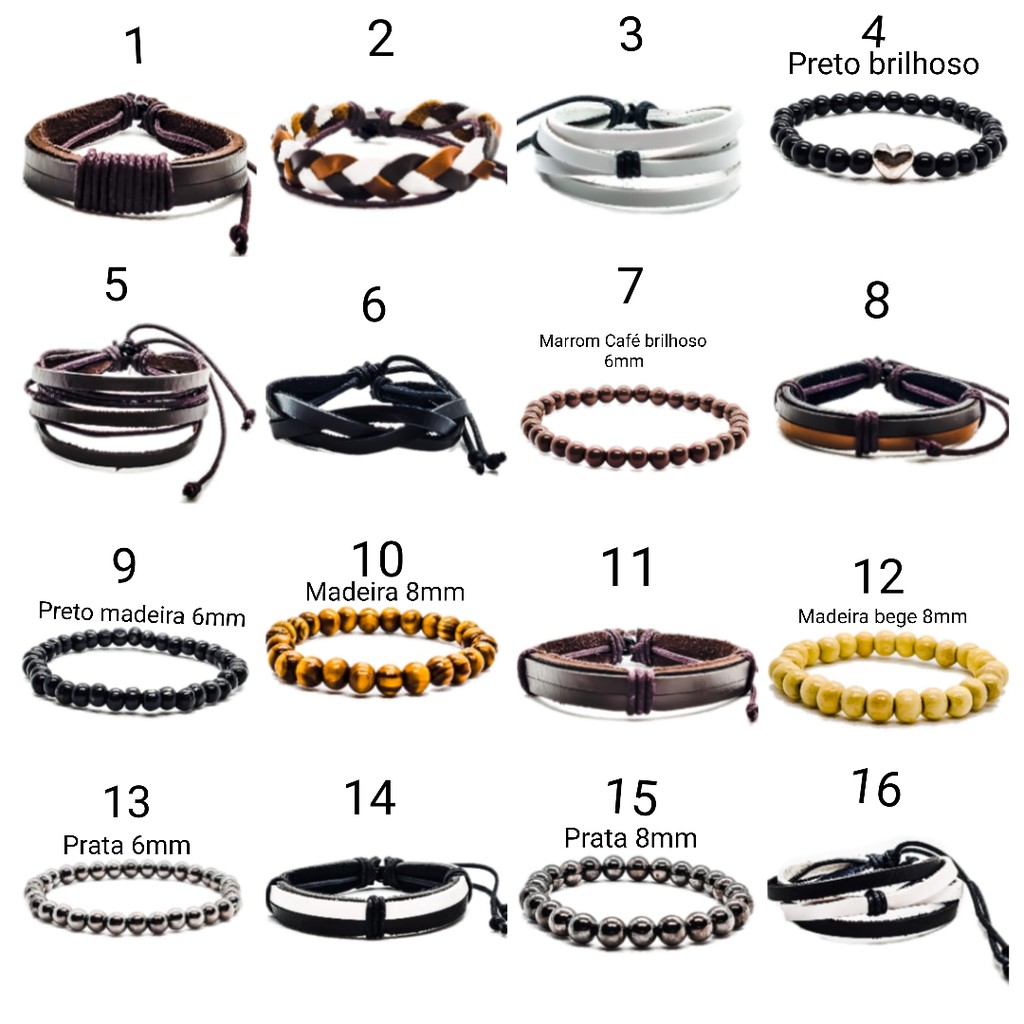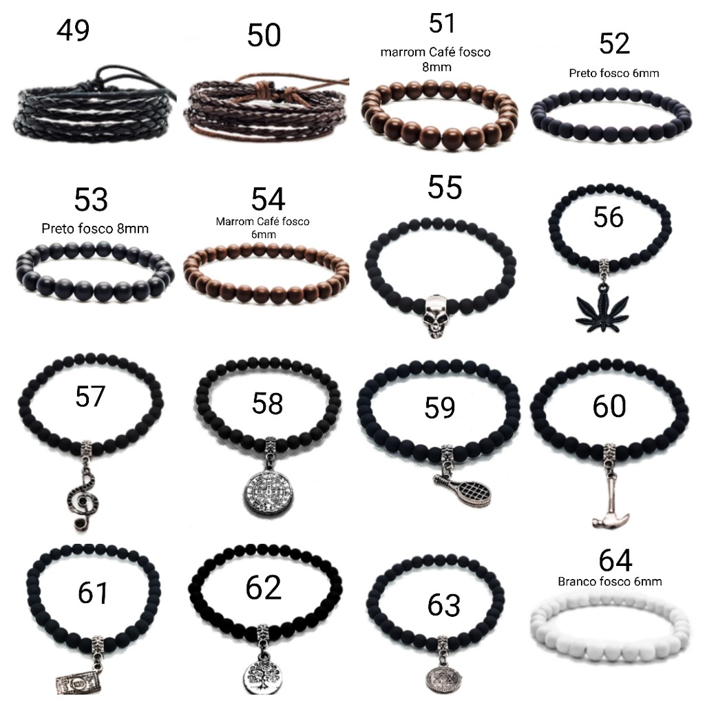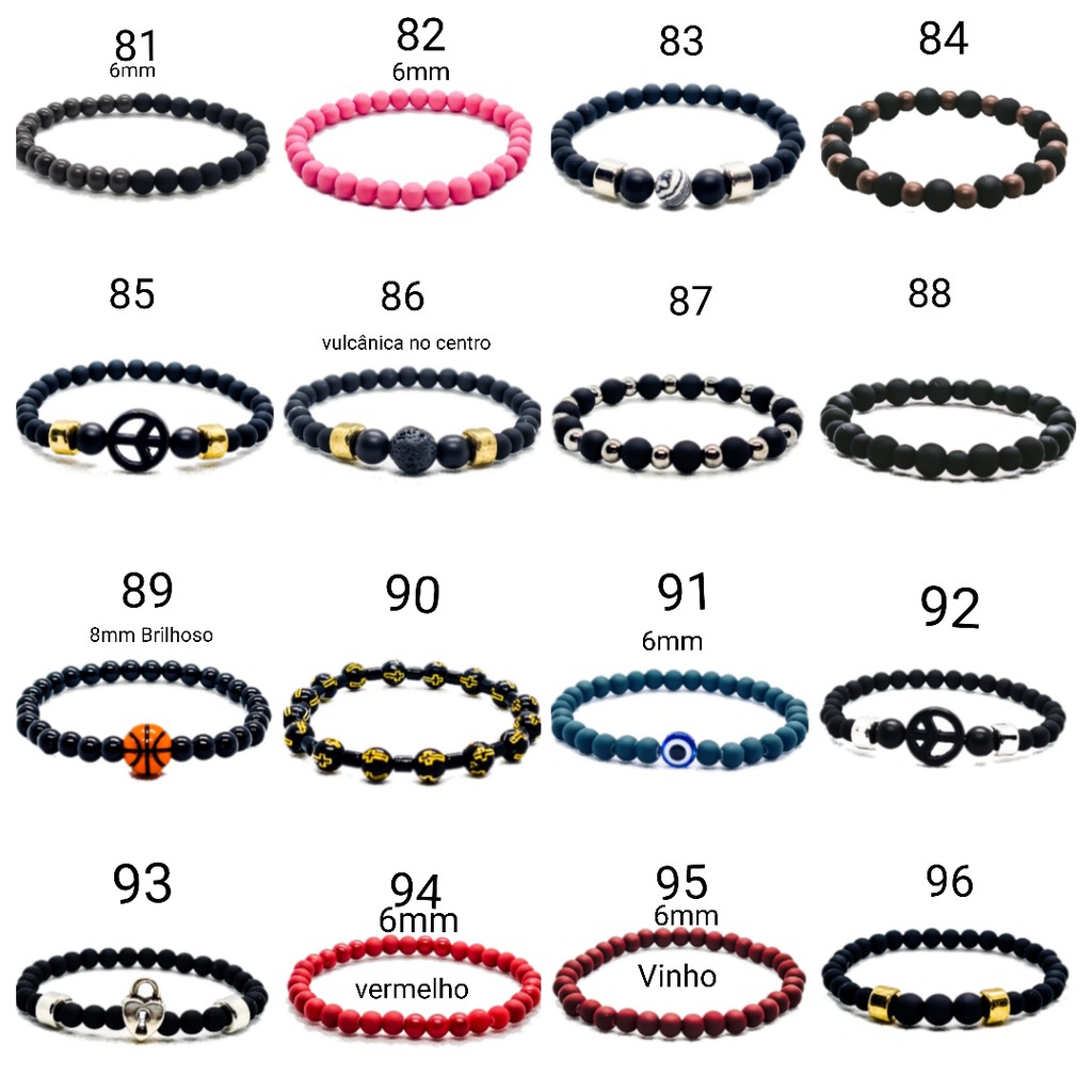Pulseira bracelete Bolinhas Pretas Brilhosas 8mm Masculino Feminina Pode Molhar Couro