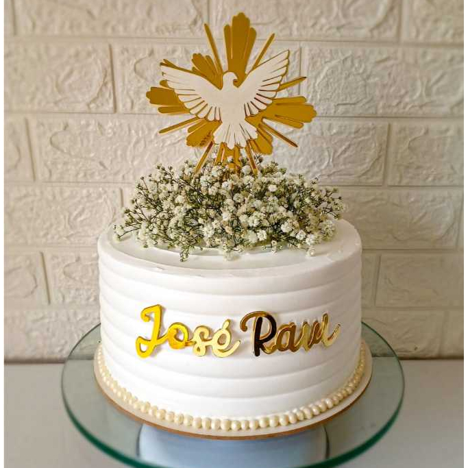 Topper /Topo de Bolo Batizado 3D e Crisma Personalizado Primeira Eucaristia