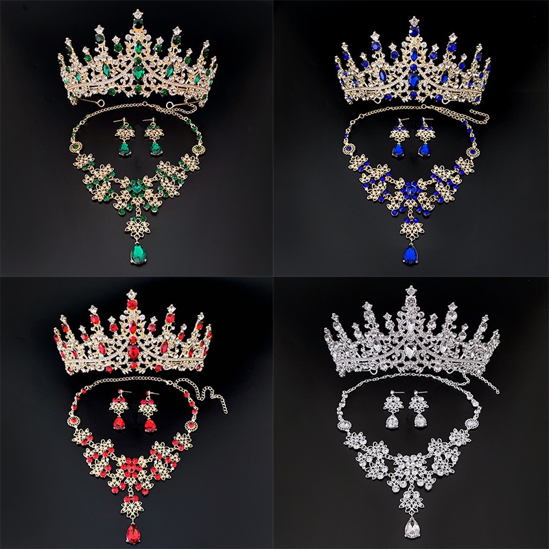 Nova Coroa De Noiva De Três Peças Conjunto De Brincos De Colar De tiara De , Acessórios De Vestido