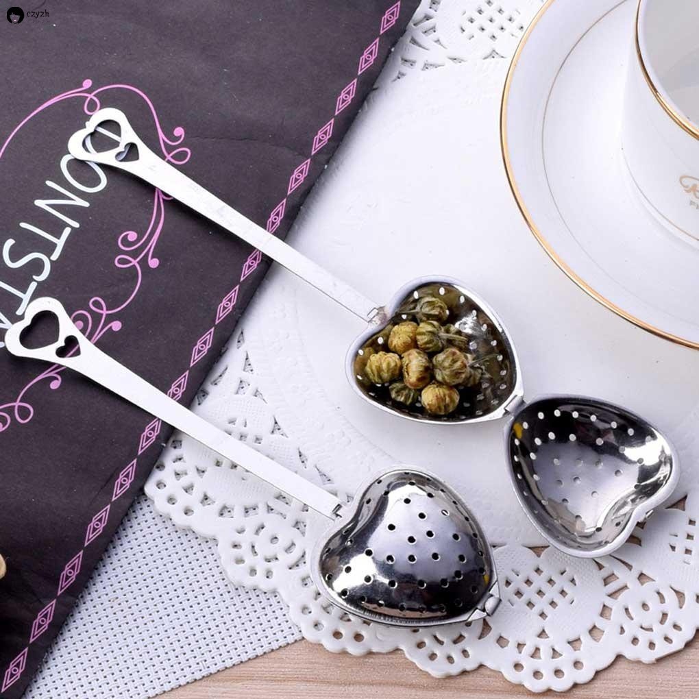 Filtro De Infusor De Chá De Aço Inoxidável Em Forma De Coração Colher Cabo Steeper