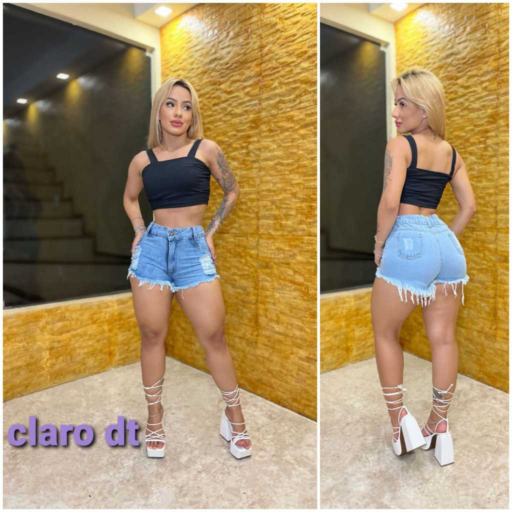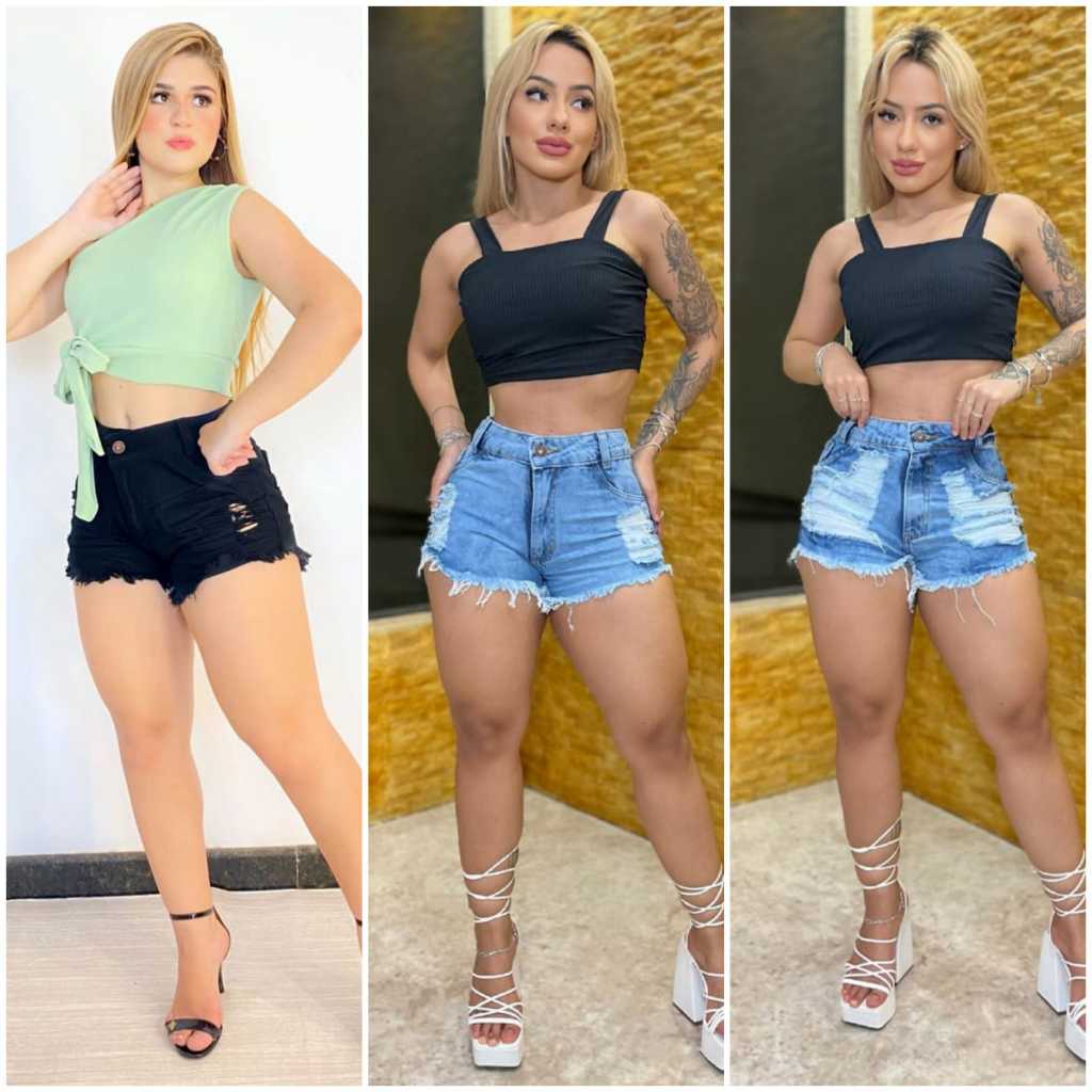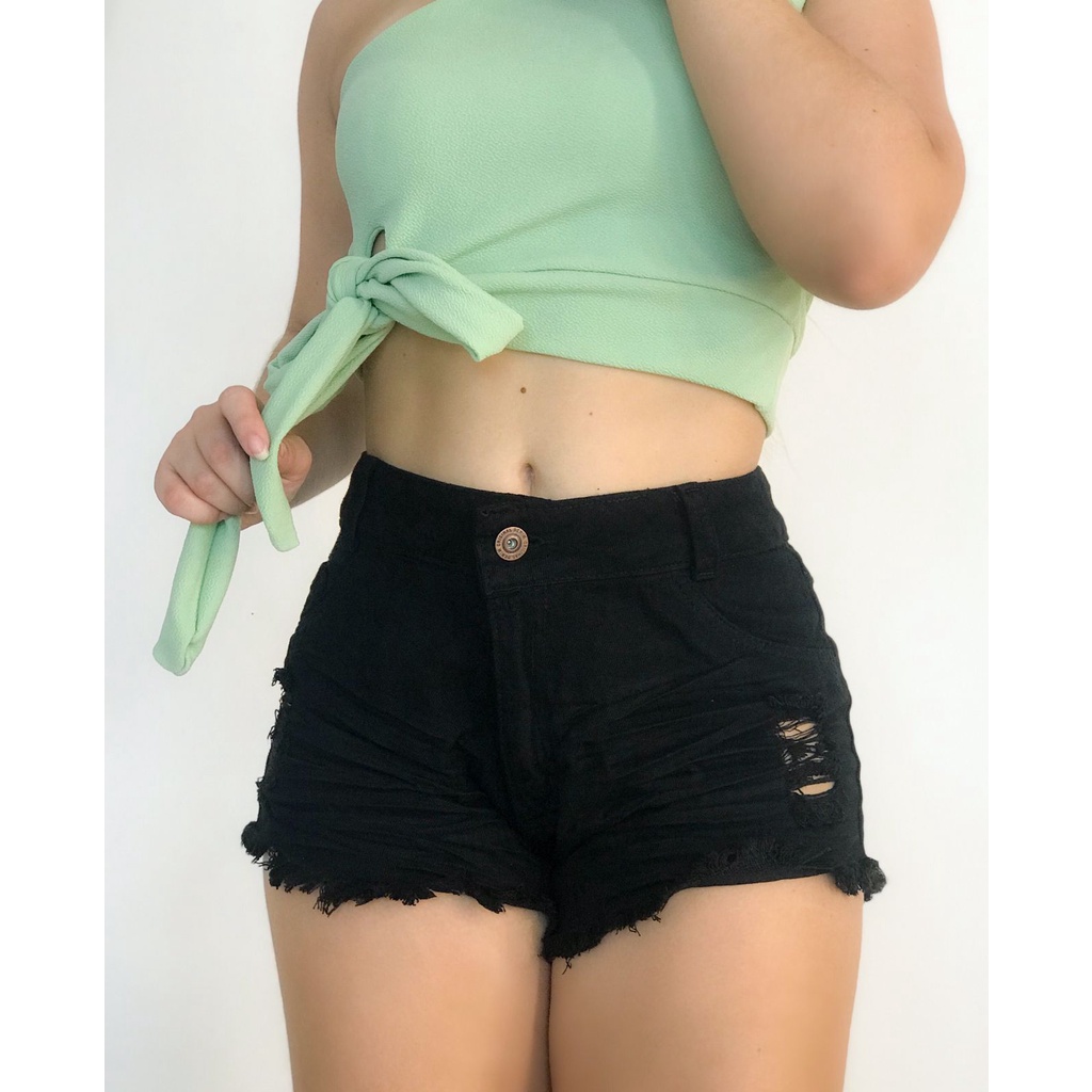 Shorts Jeans Feminino Cintura Alta Preto Desfiado Perna Hot Pants