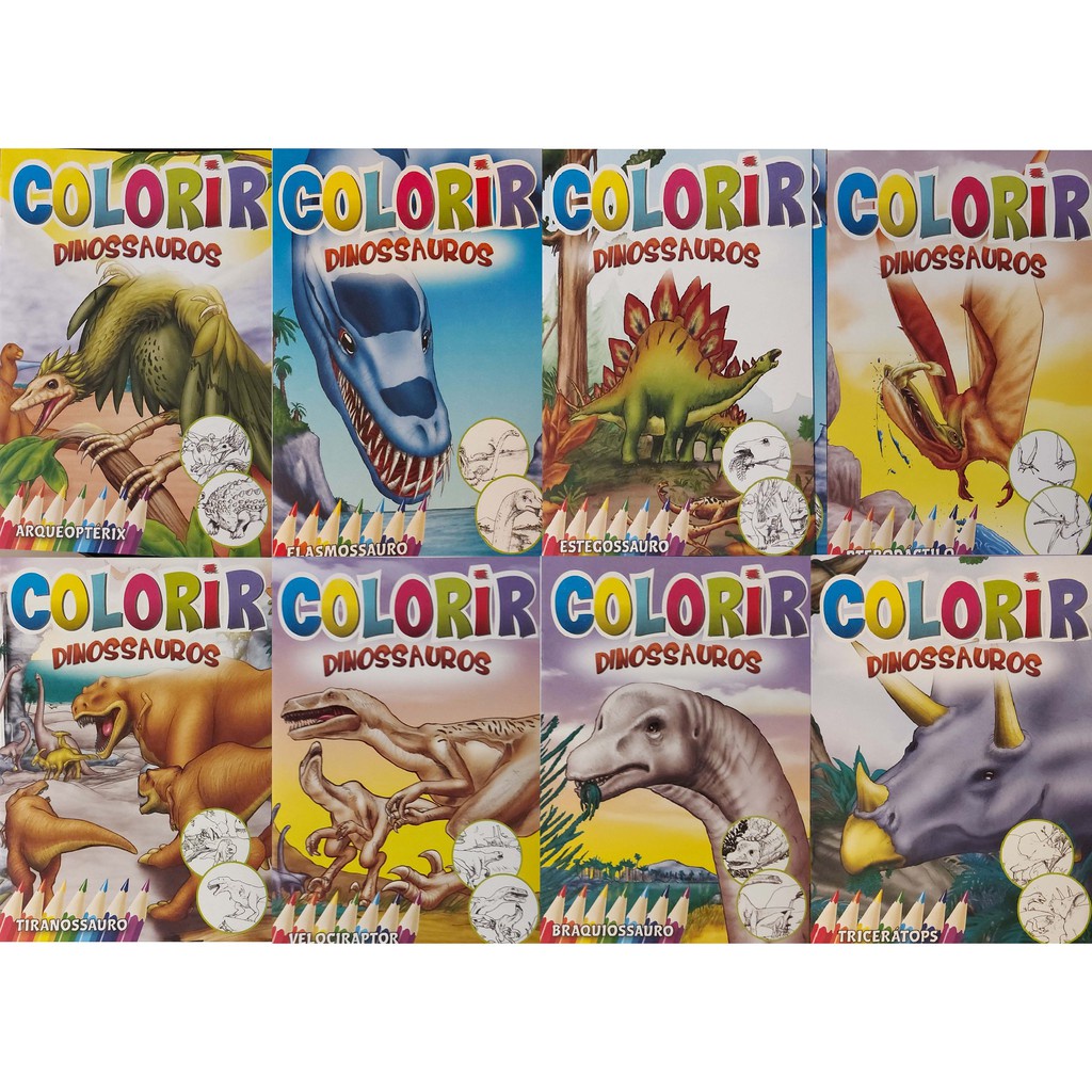 Kit C/ 26 Livrinhos Dinossauros - 8 Histórias + 18 Colorir