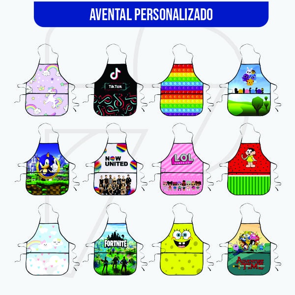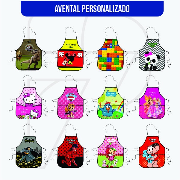 Avental Escolar Infantil Personalizado com Nome Vários temas