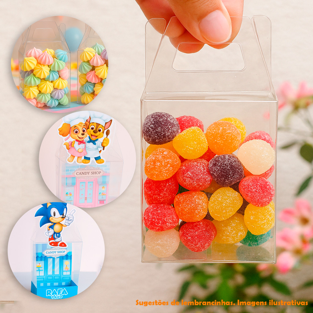 Caixa Maletinha 9x6,5x4cm transparente p/ Doce Lembrancinhas Macarons trufas relogio digital acetato