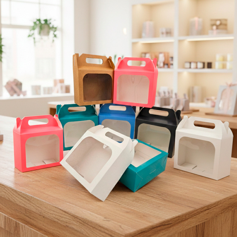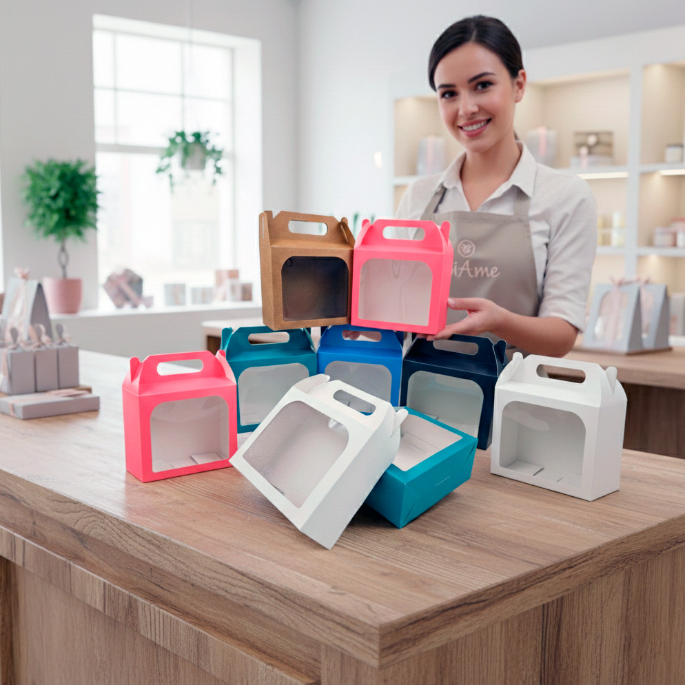 Caixa Embalagem Maleta 15x12x6 com Visor para Doces Sabonete Perfume Kit Presente. em 6 cores
