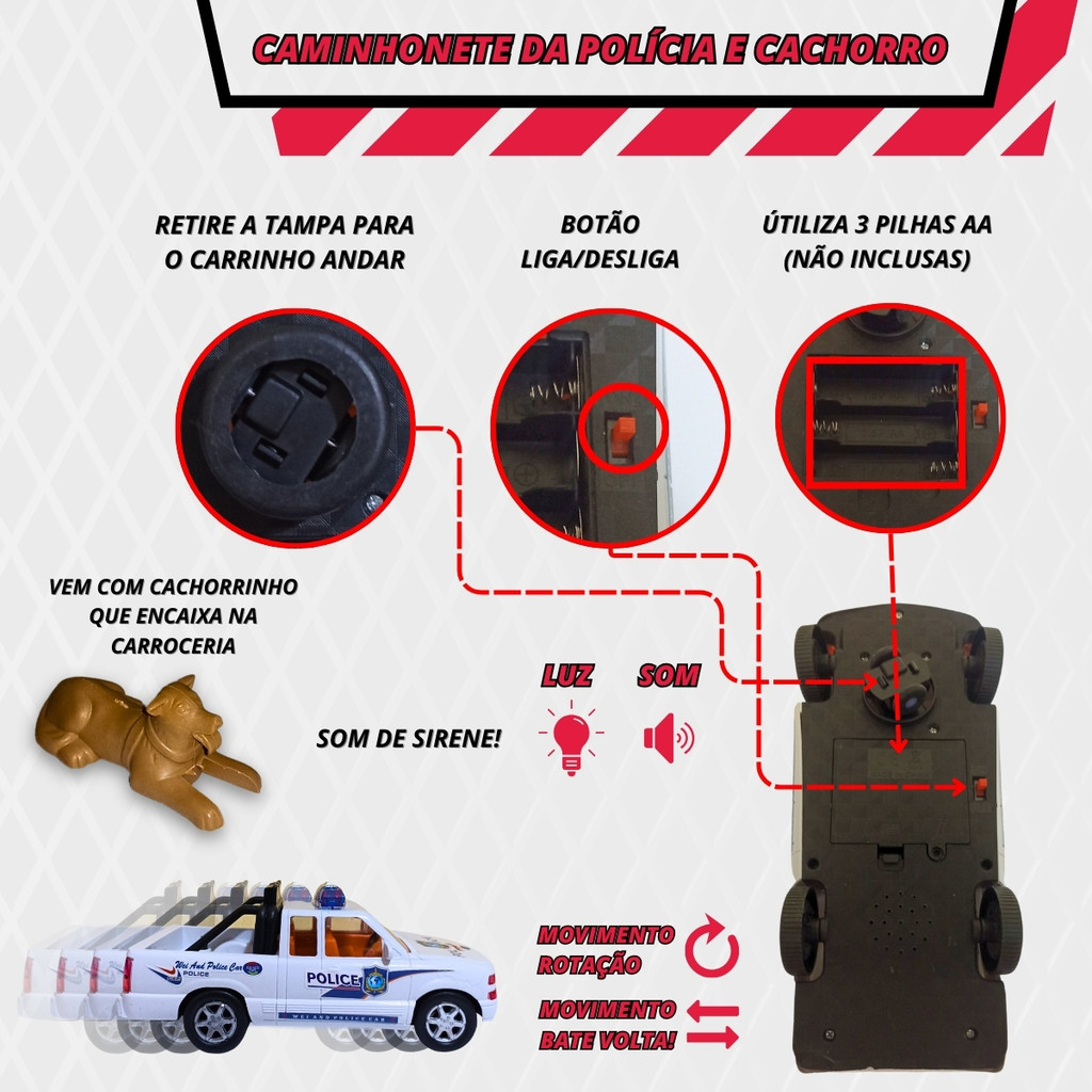 Caminhonete Da Polícia Carro Gira 360 Bate Volta Som Luz