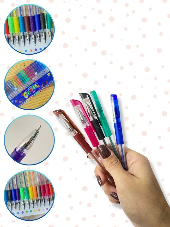 Caneta Gel Perfumadas Com Glitter Kit Com 24 Cores Pastéis