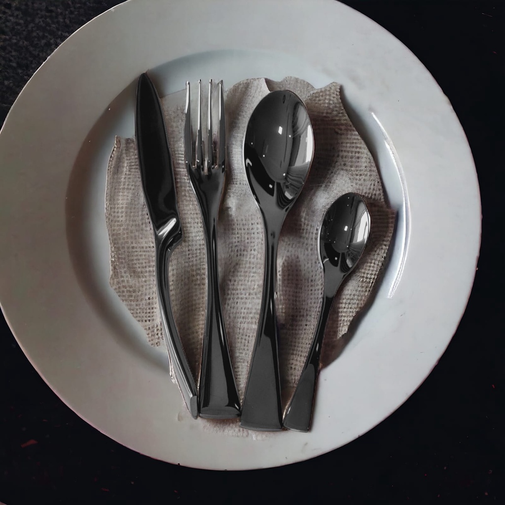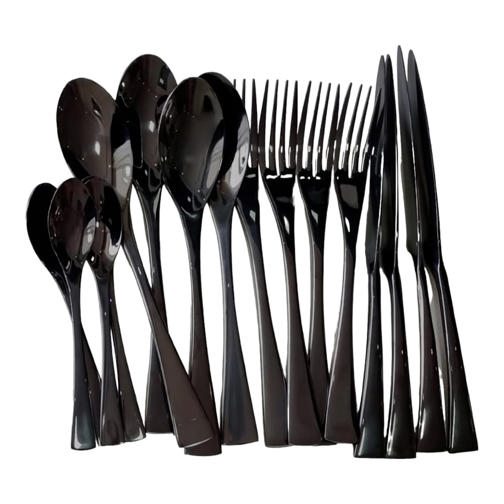 Faqueiro De Luxo Talheres De Inox Longo Preto Liso 16pc