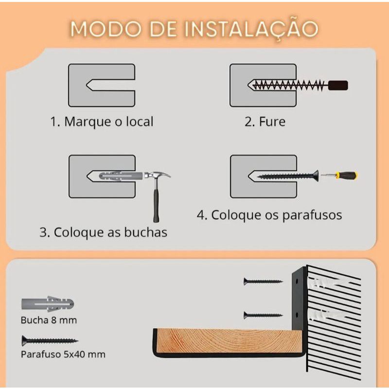 Mão Francesa Suporte Invertido Cantoneira p/ Prateleira
