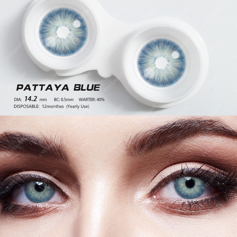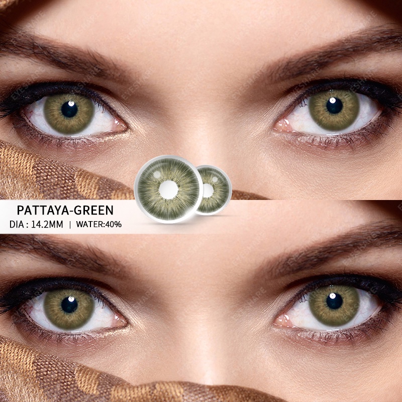 (-0,0 ~-8,0) PATTAYA BLUE GREEN Miopia Grade Eyeshare Lente De Contato Com Len Anual Natural 14,0mm 2 Unidades